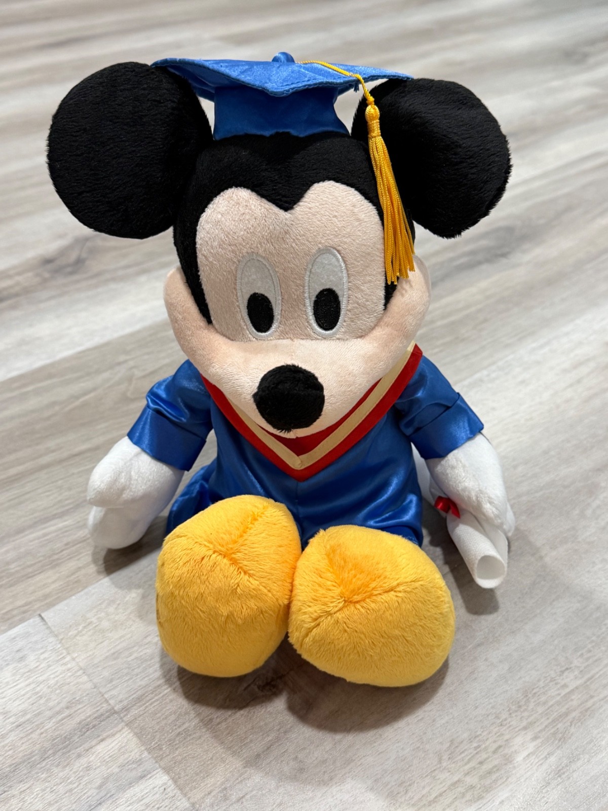 Disney Graduation Mickey Mouse Plush Blue Gown Cap Diploma Stuffed Toy