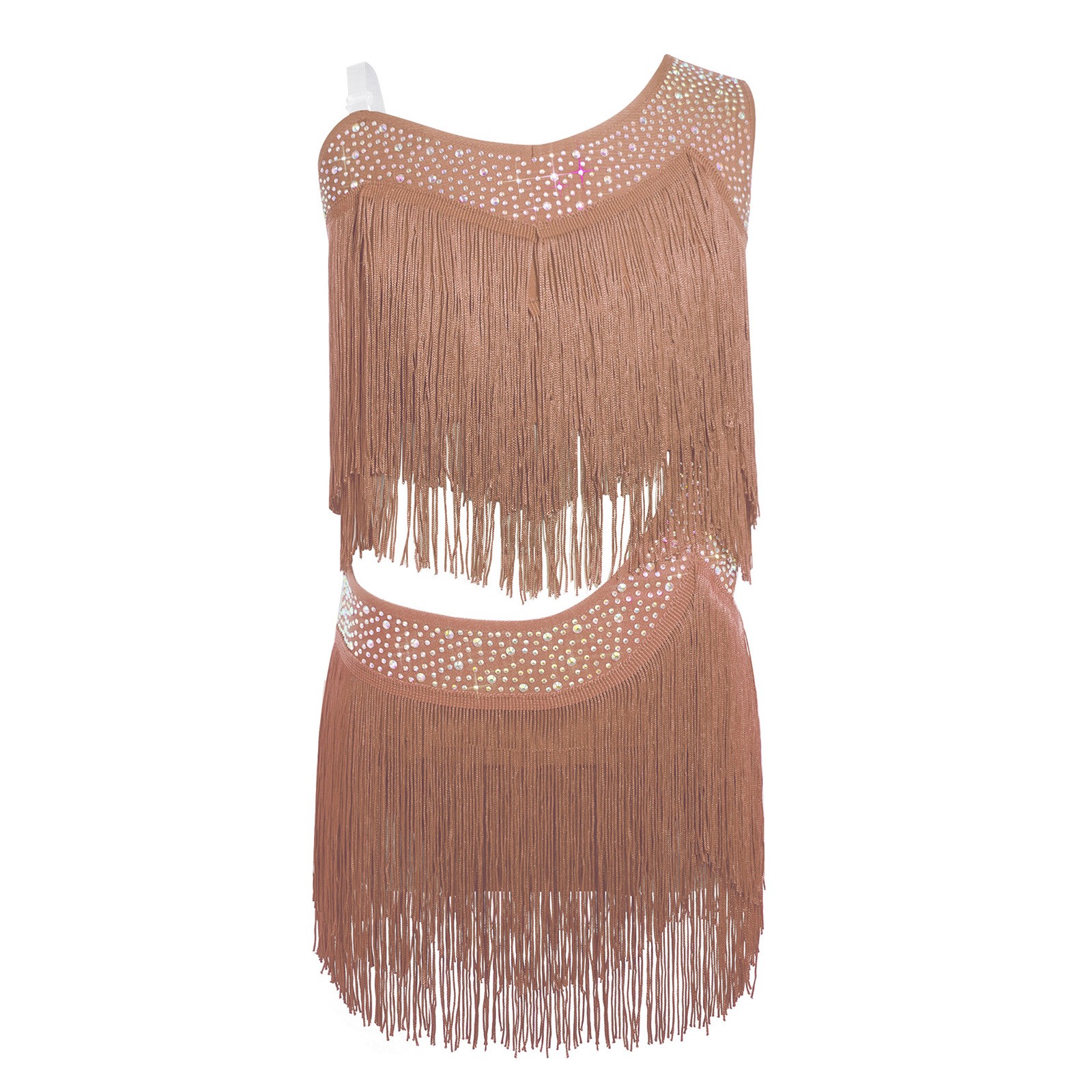 как выглядит Kids Girls Dancewear Latin Tassel Rhinestones Set Asymmetrical Outfit Tango фото