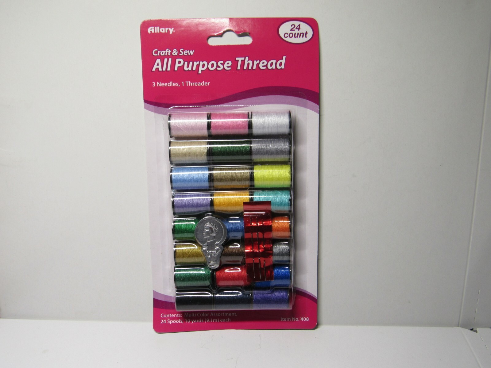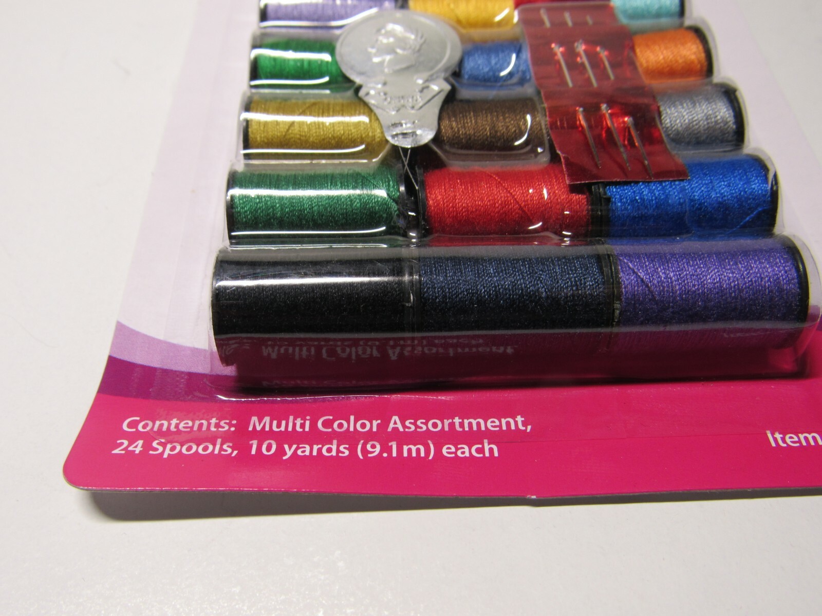 Sewing Thread Kit Set 24 Spools 10 yds each 3 Needles New Red Pink Blue Green