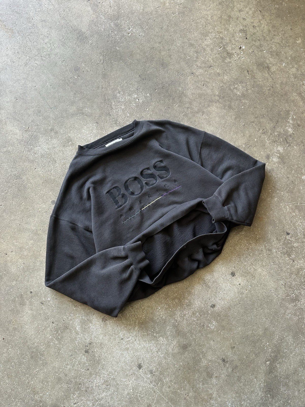как выглядит Vintage 90s Boss American Embroidered Logo Sweatshirt Black Pullover Size L фото