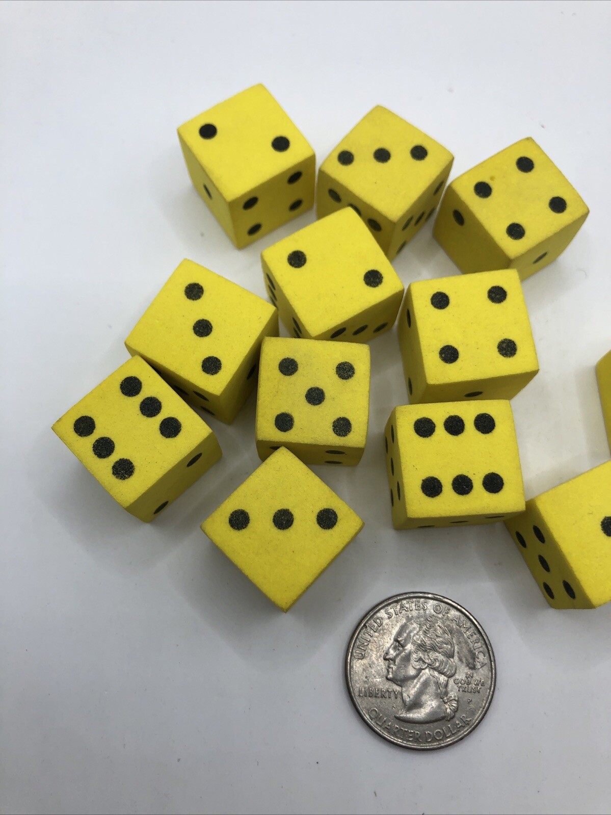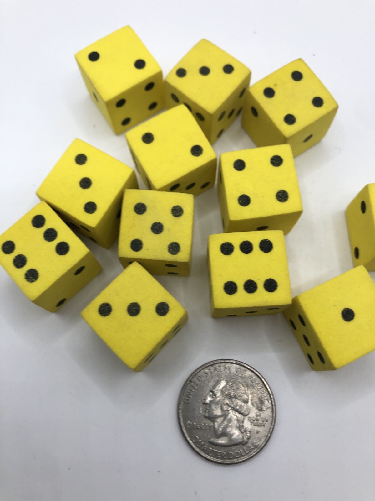 Lot Of 12 Foam Dice - Yellow with Black Pips