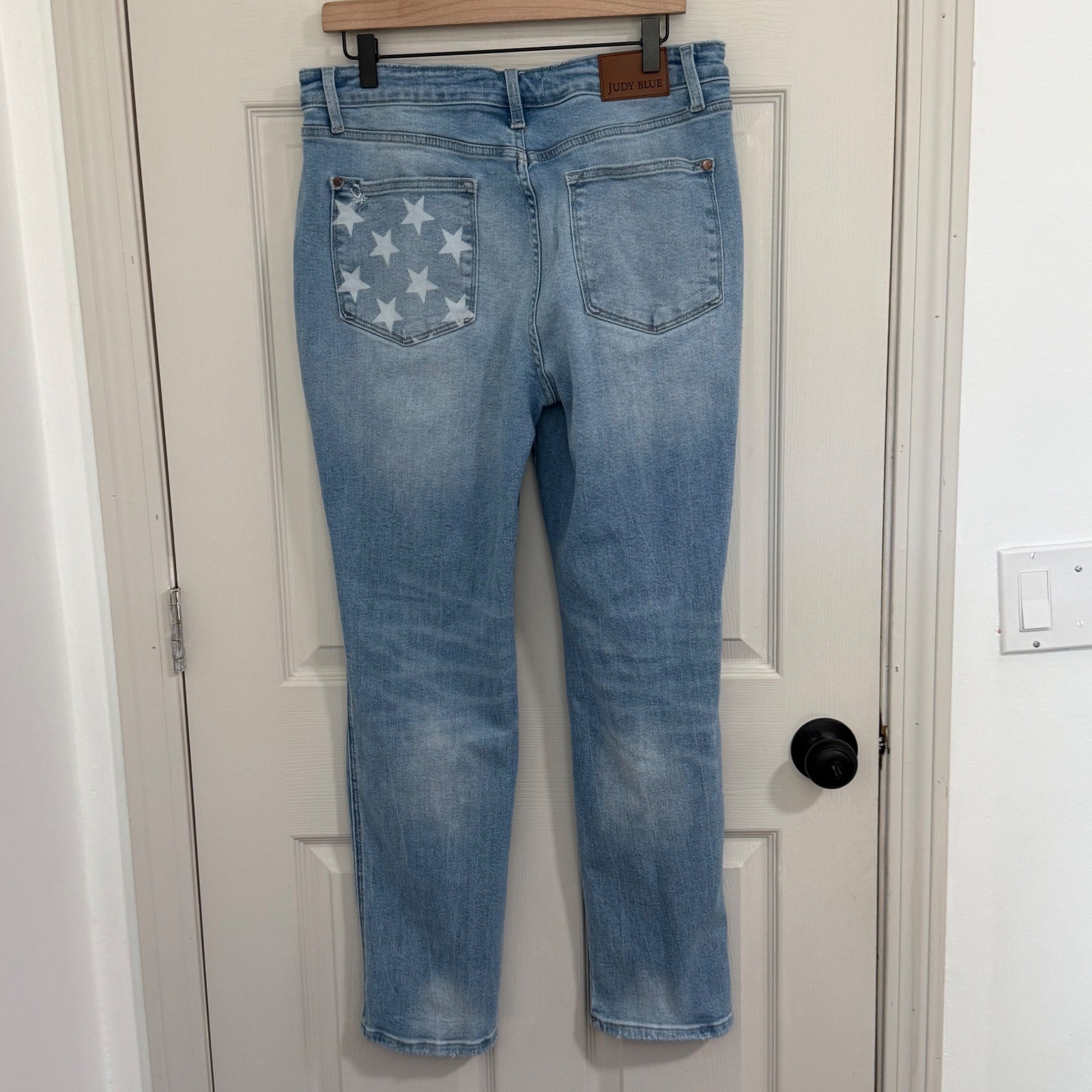 Judy Blue Boyfriend Fit Jeans Women 13/31 Distressed Star Pocket Light Wash Boho