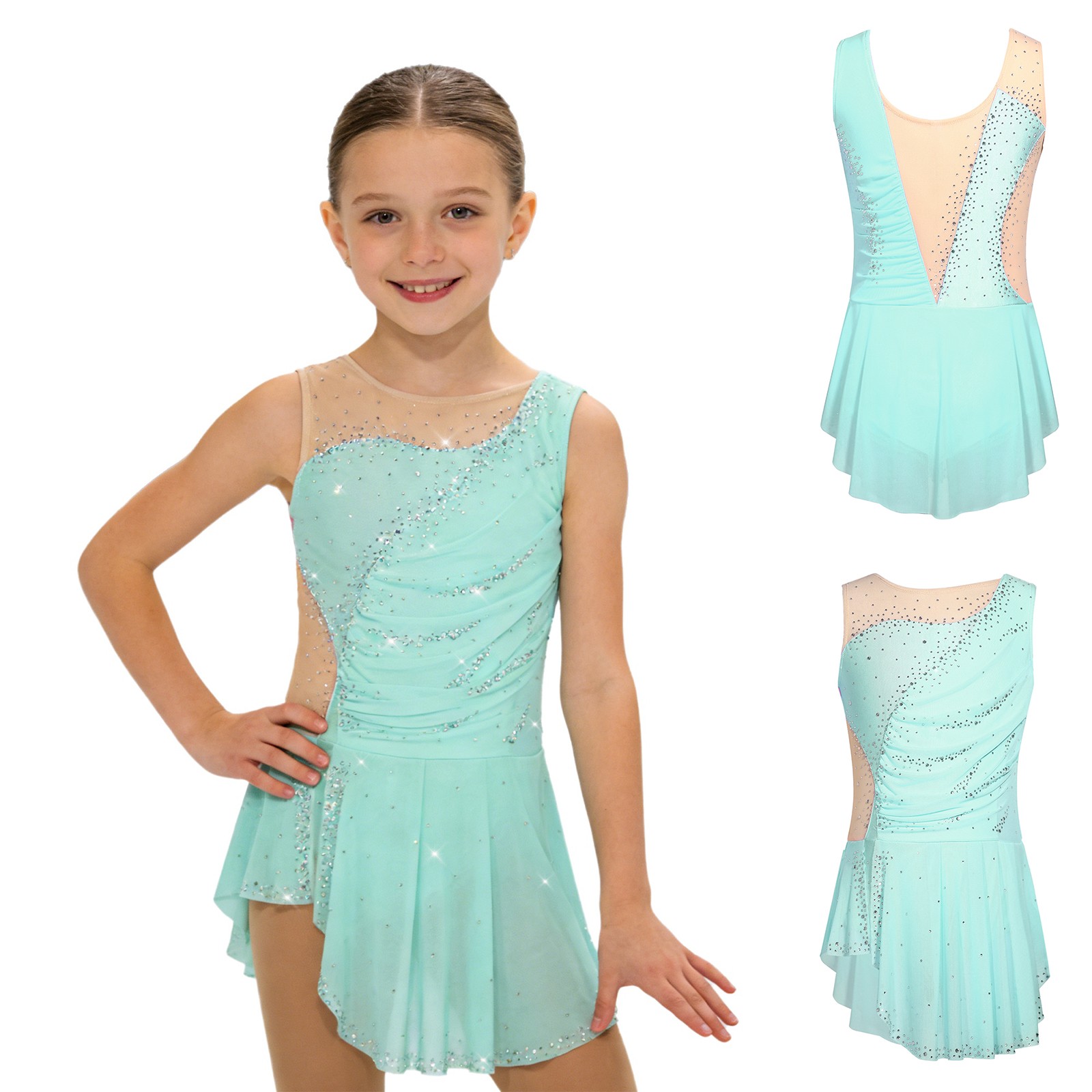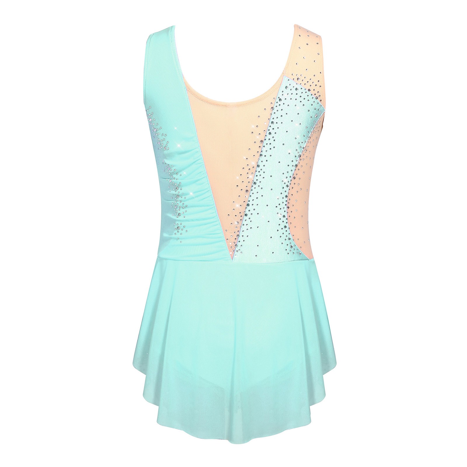 Girls Dress Show Ballroom Fitness Dancewear Rave Skirted Training Rhinestone