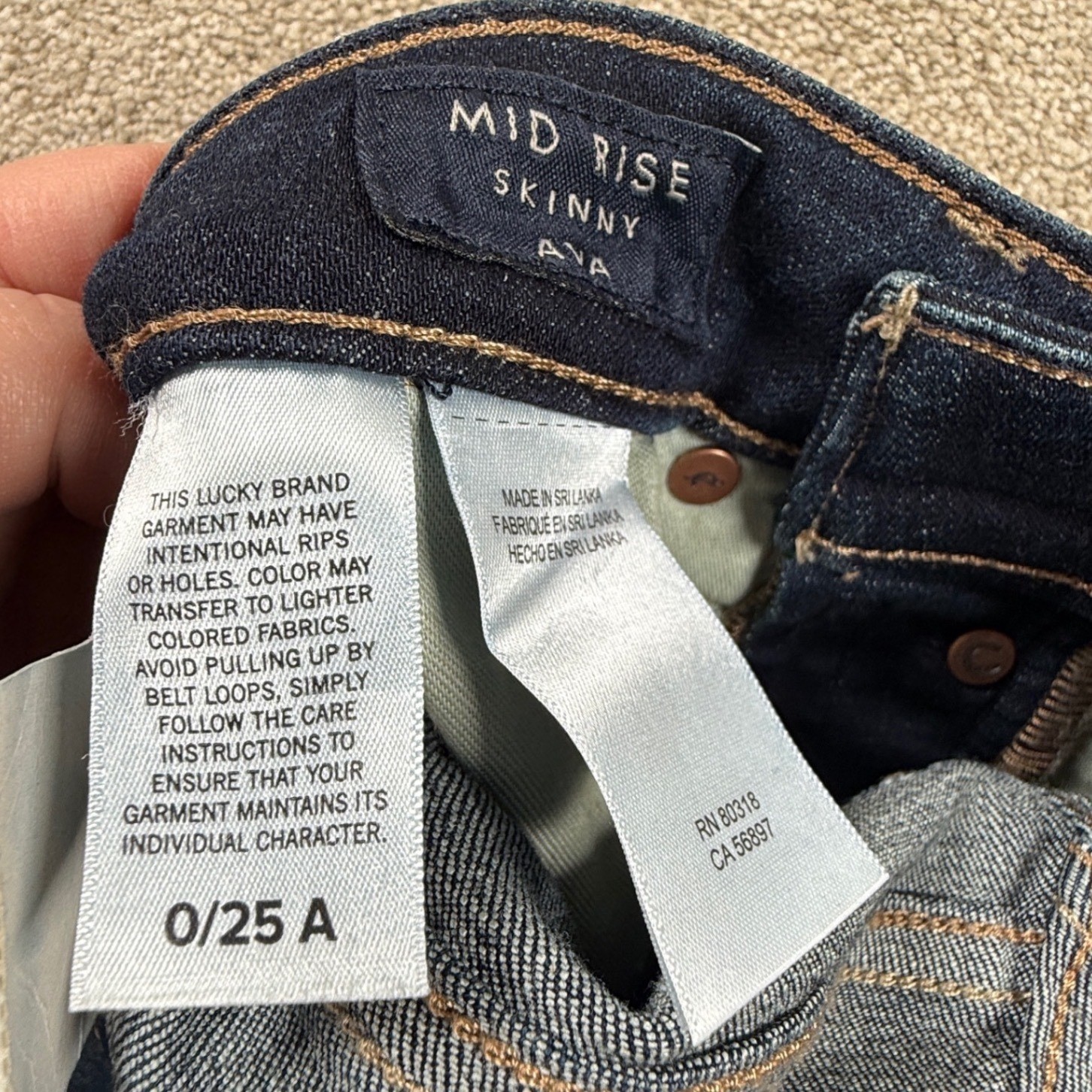 Lucky Brand Mid Rise Skinny Ankle Jeans Dark Wash Button Fly Size 0/25 NEW