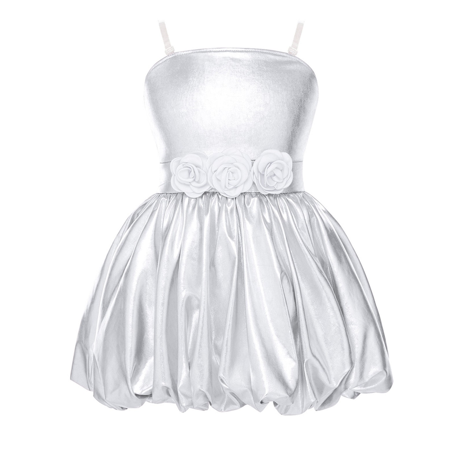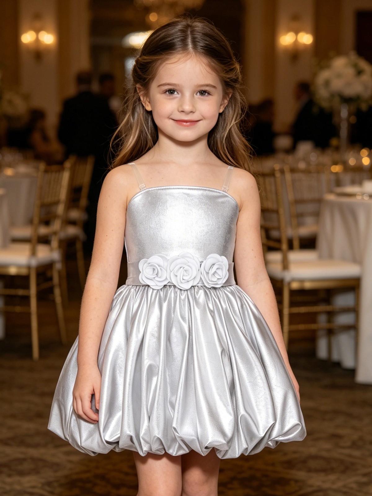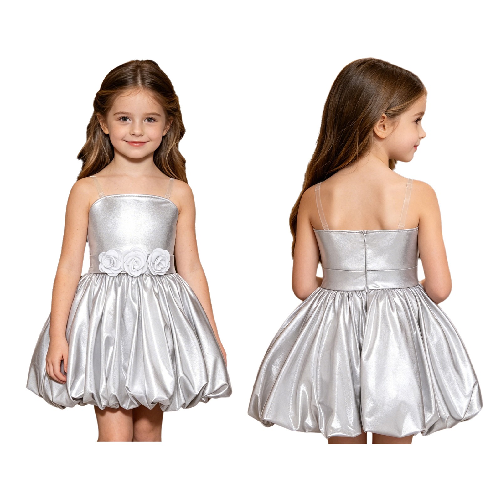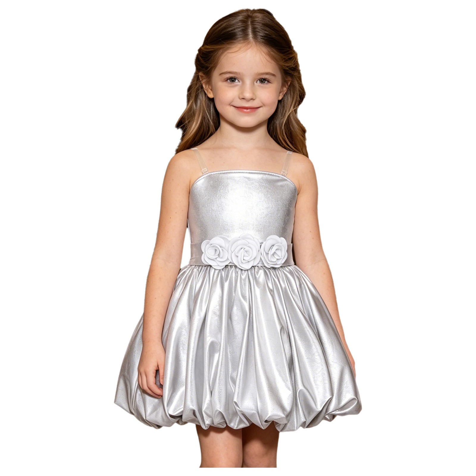 Kids Girls Gown Sparkle Bubble Dress Occasion Puff Dress Guest Metallic Casual