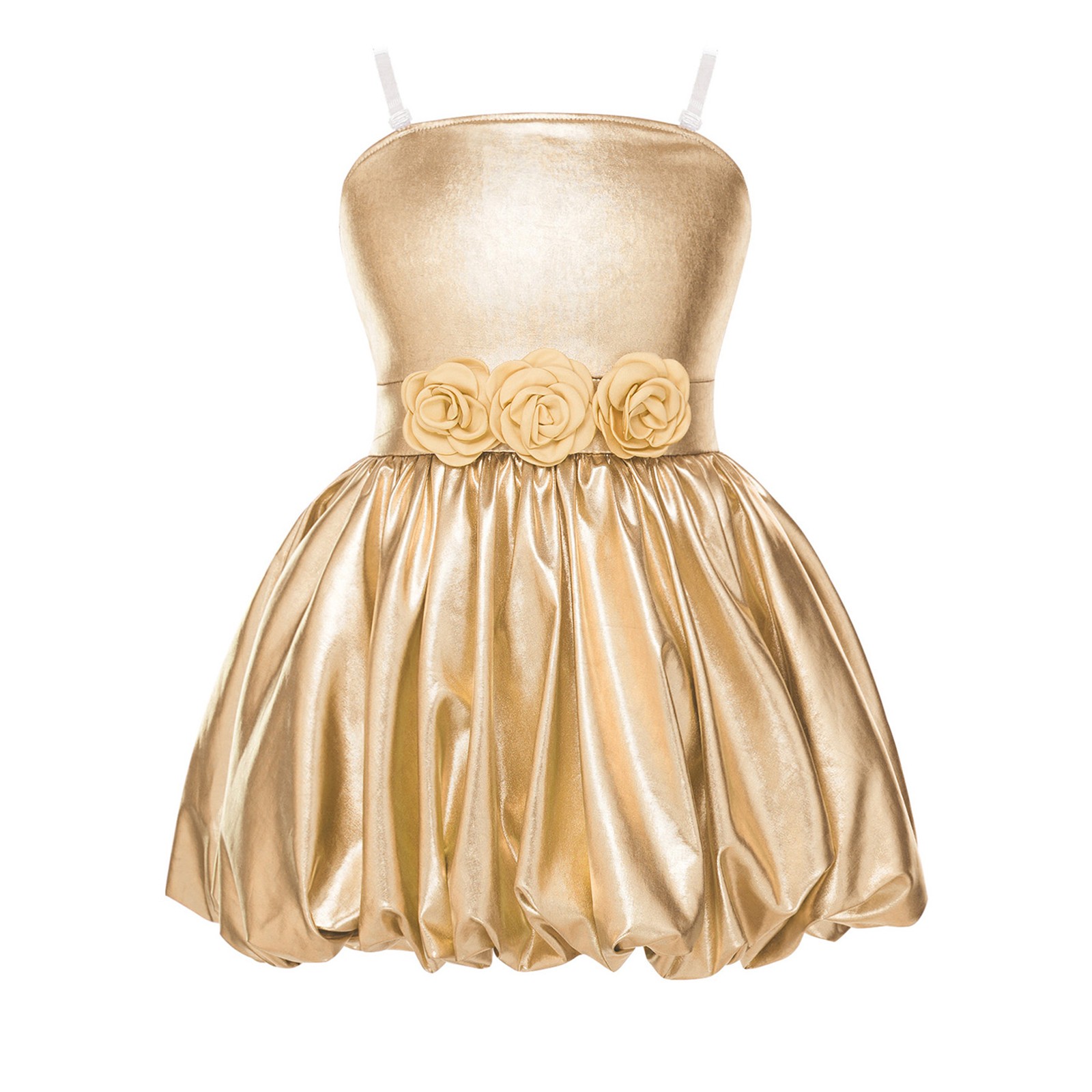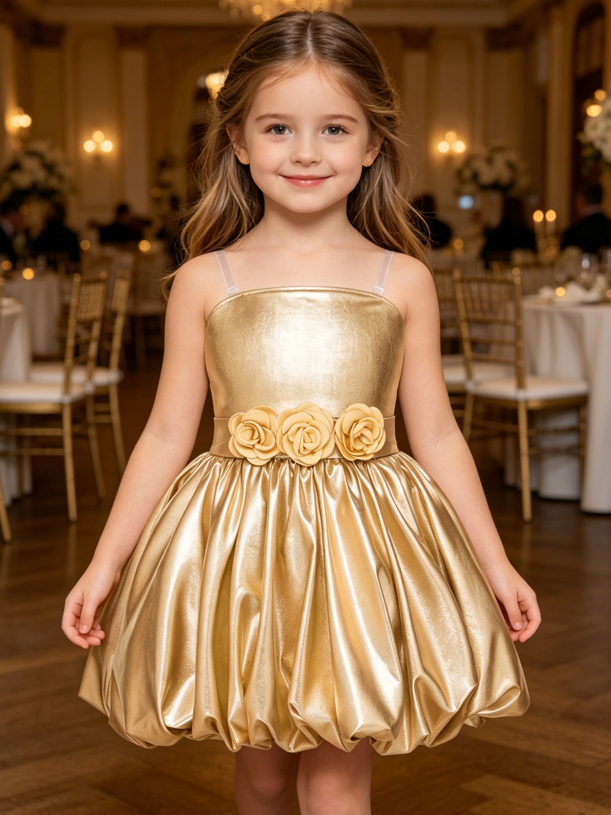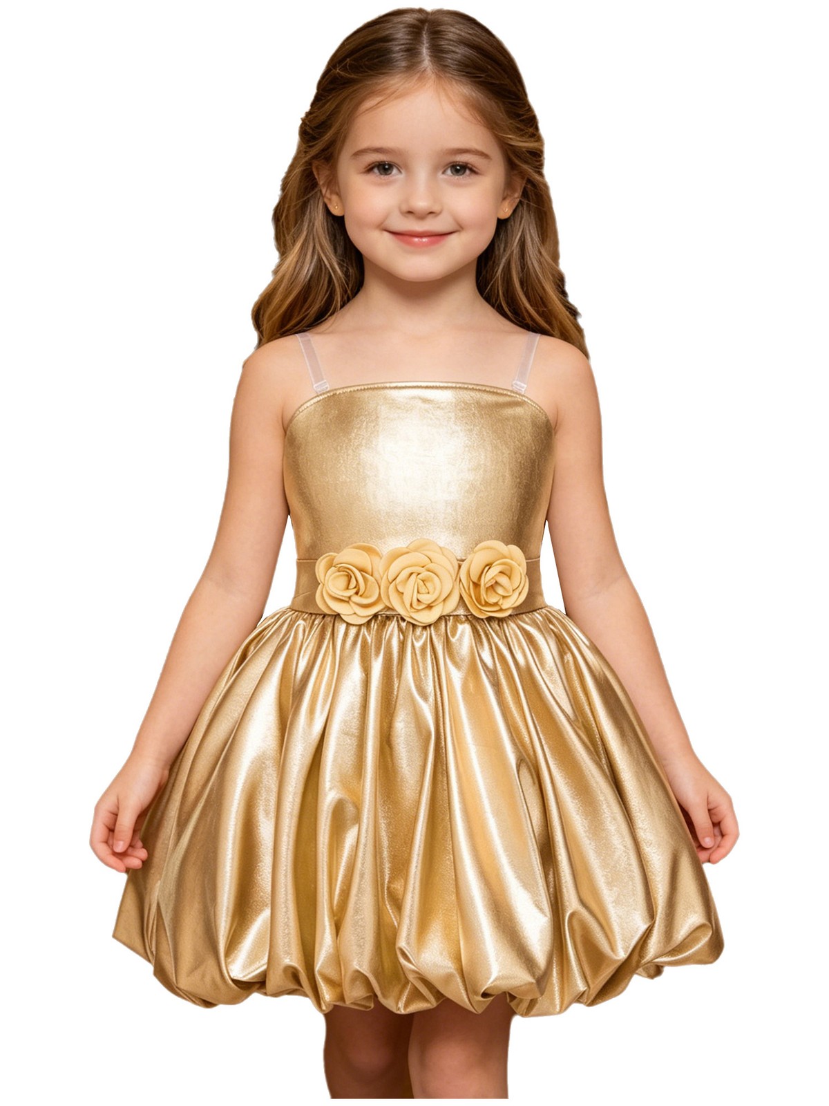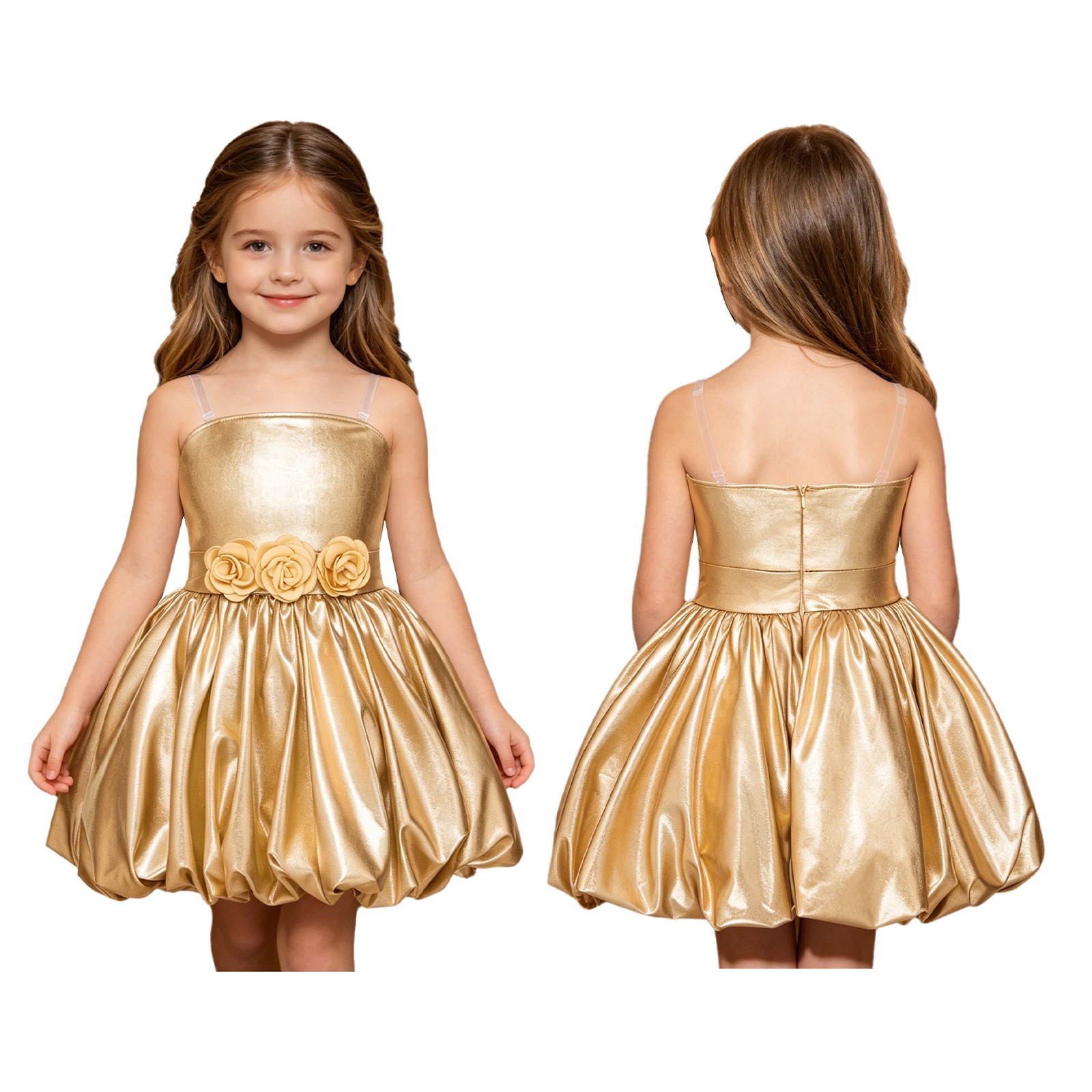 Kids Girls Bubble Dress Pageant Puff Dress Sparkle Gown Strapless Metallic