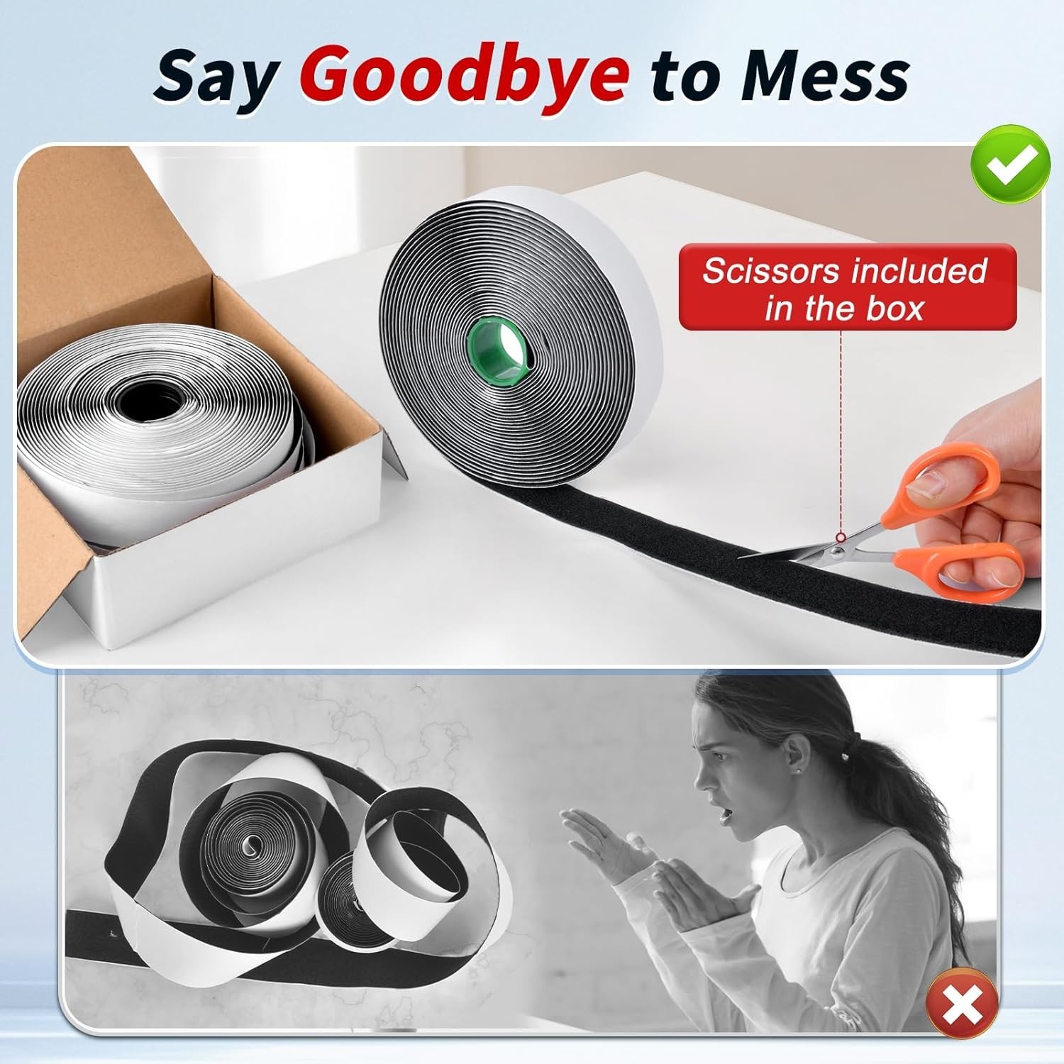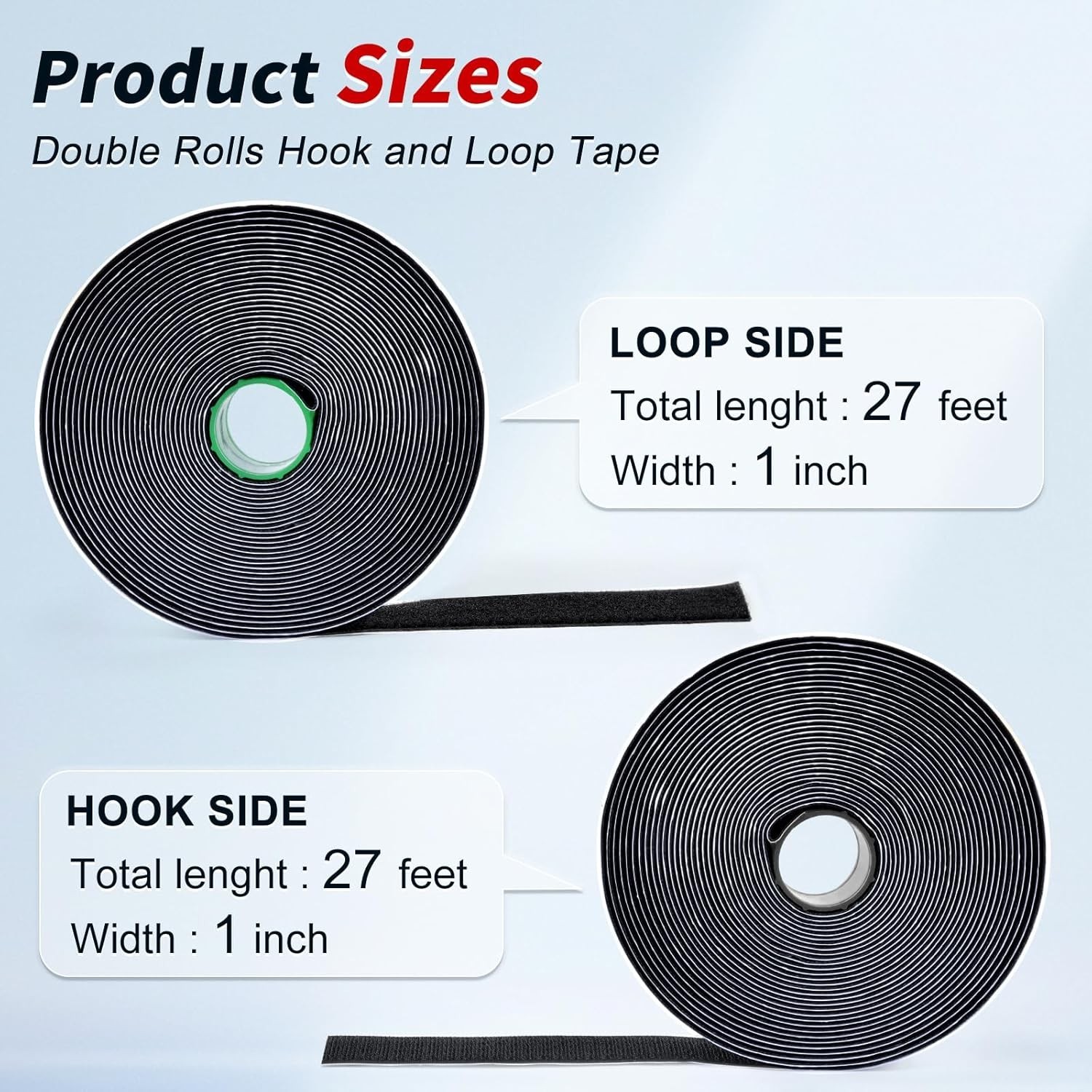 27Ft X 1 Inch Hook and Loop Strips with Adhesive, Double Sided Self Adhesive,