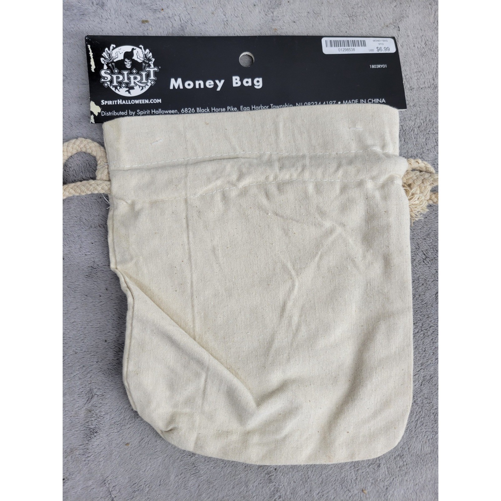 Spirit Halloween Money Bag Costume Prop Beige Drawstring Canvas Dollar Sign