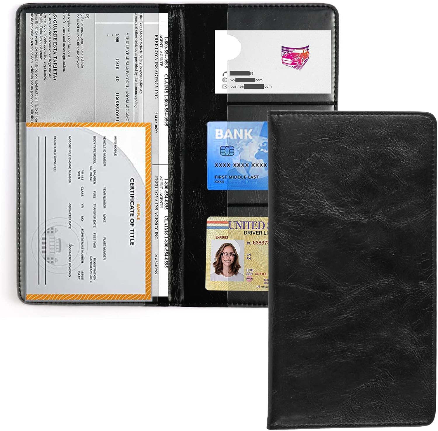 Auto Car Registration and Insurance Holder - PU Leather Vehicle Glove Box Organi
