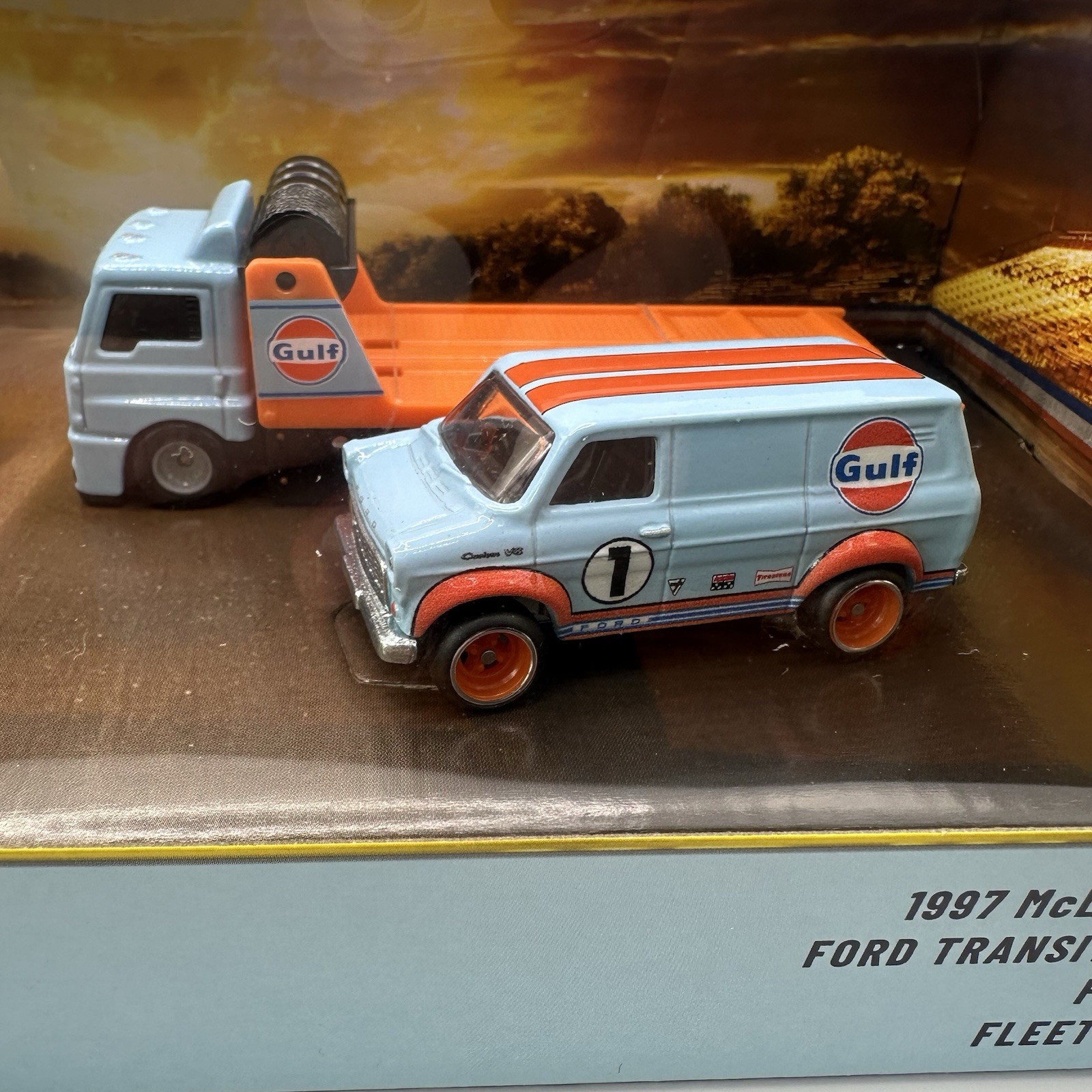 как выглядит Hot Wheels Premium Collector Diorama Gulf Set McLAREN F1, Supervan, Ford GT-40 фото