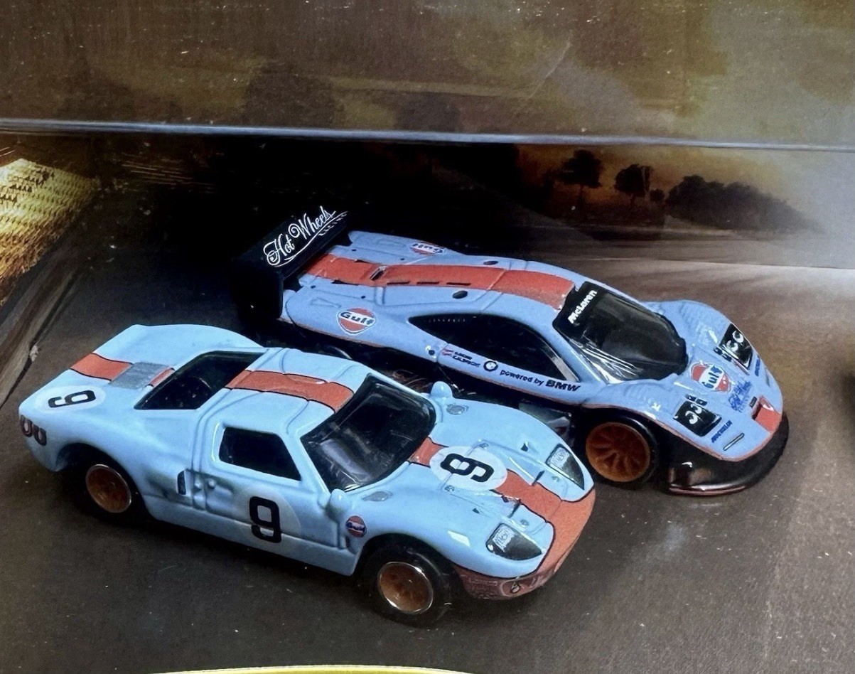 Hot Wheels Premium Collector Diorama Gulf Set McLAREN F1, Supervan, Ford GT-40