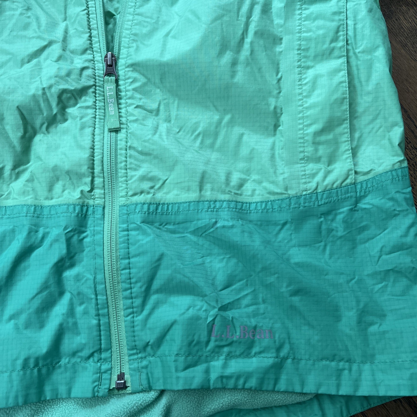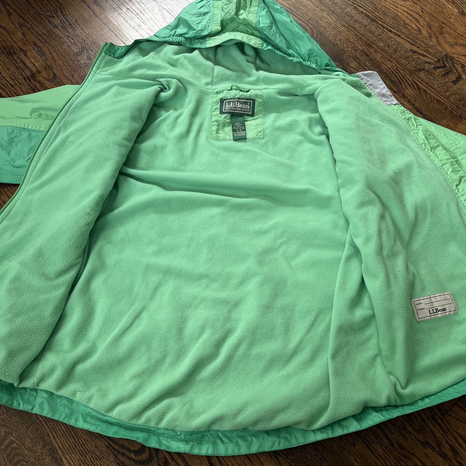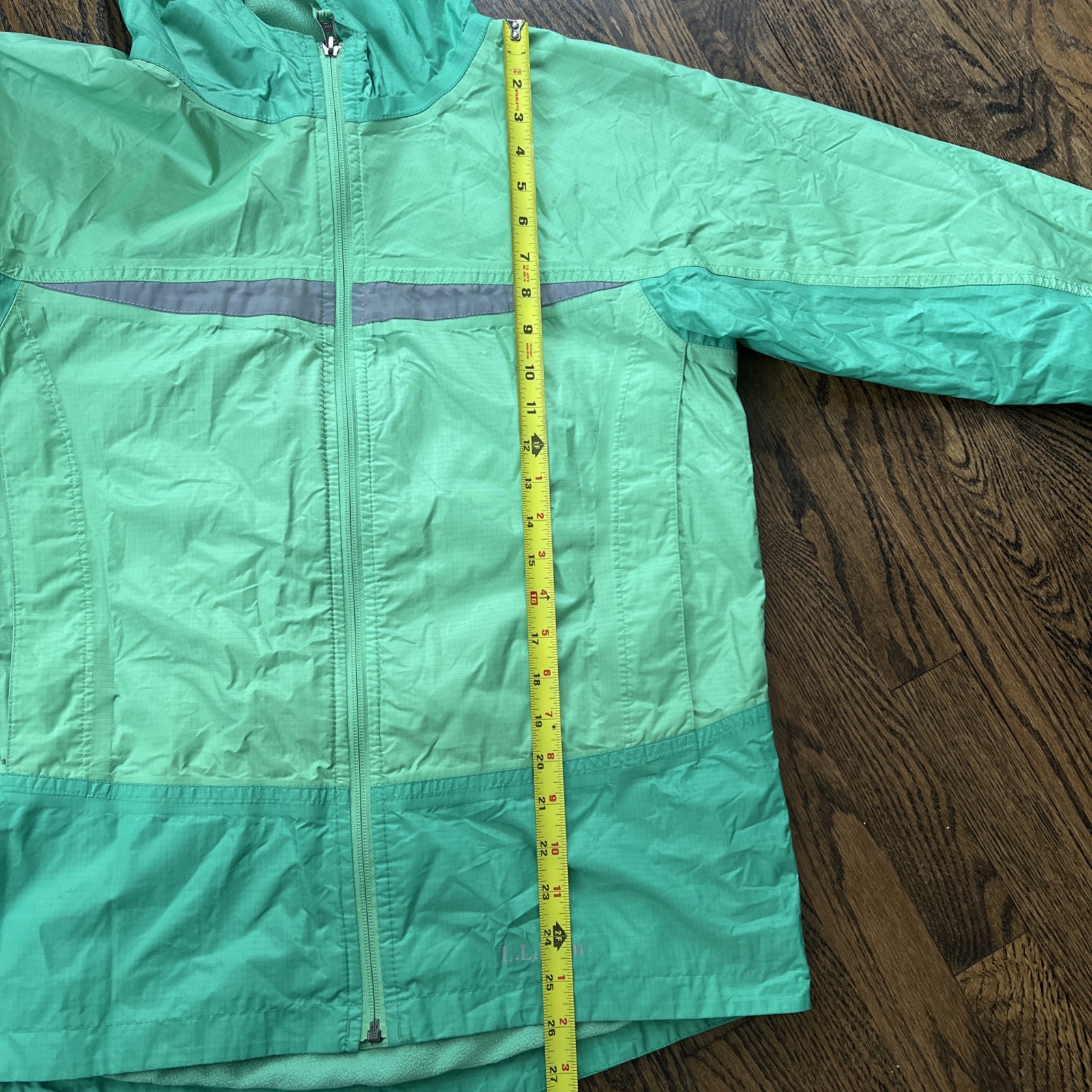как выглядит L.L. Bean XL 18 Green Rain Jacket Hooded Youth Reflective Back Pocket фото
