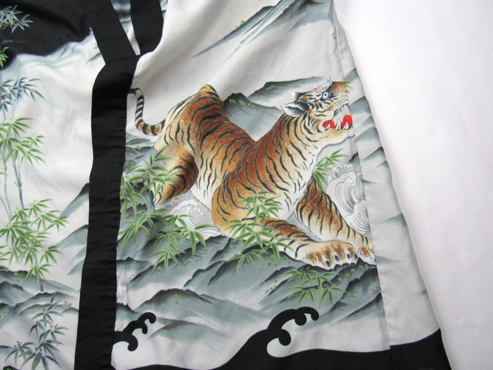 Vtg Ichiban Made Japan Japanese Kimono Robe Tiger Wave Mountain Smoking Jacket