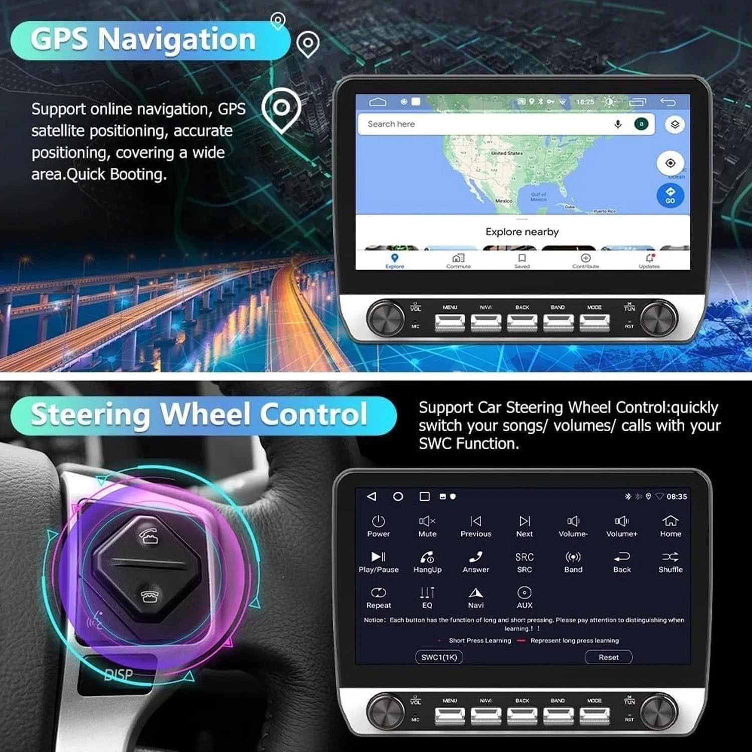 Built-in offline map, free update (support Igo/Google map) |