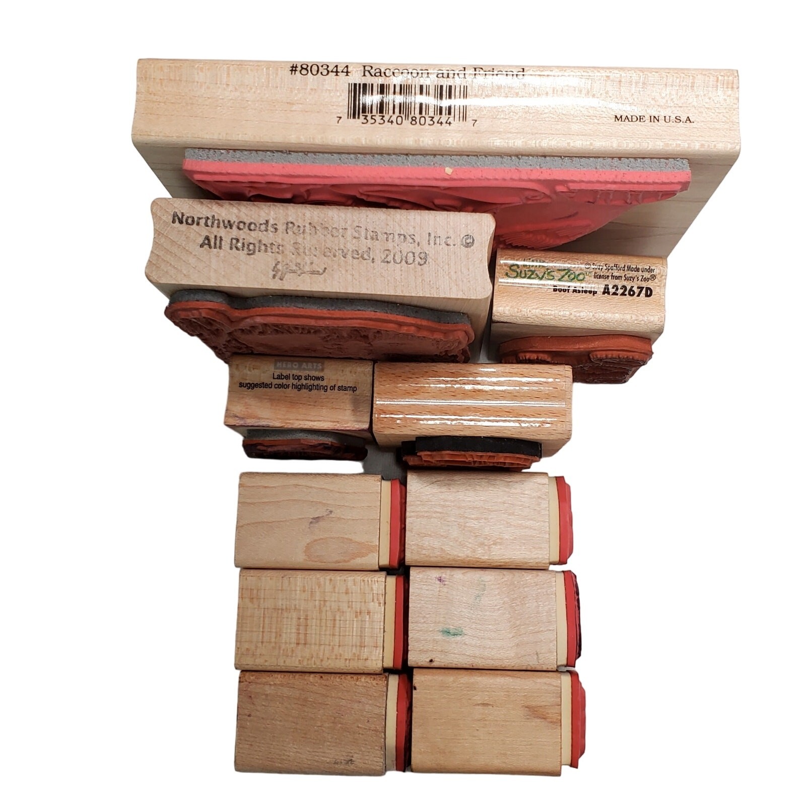 Vtg Junk Drawer Lot of 15 Cute Animal Core Rubber Stamps Raccoon Bear Insects