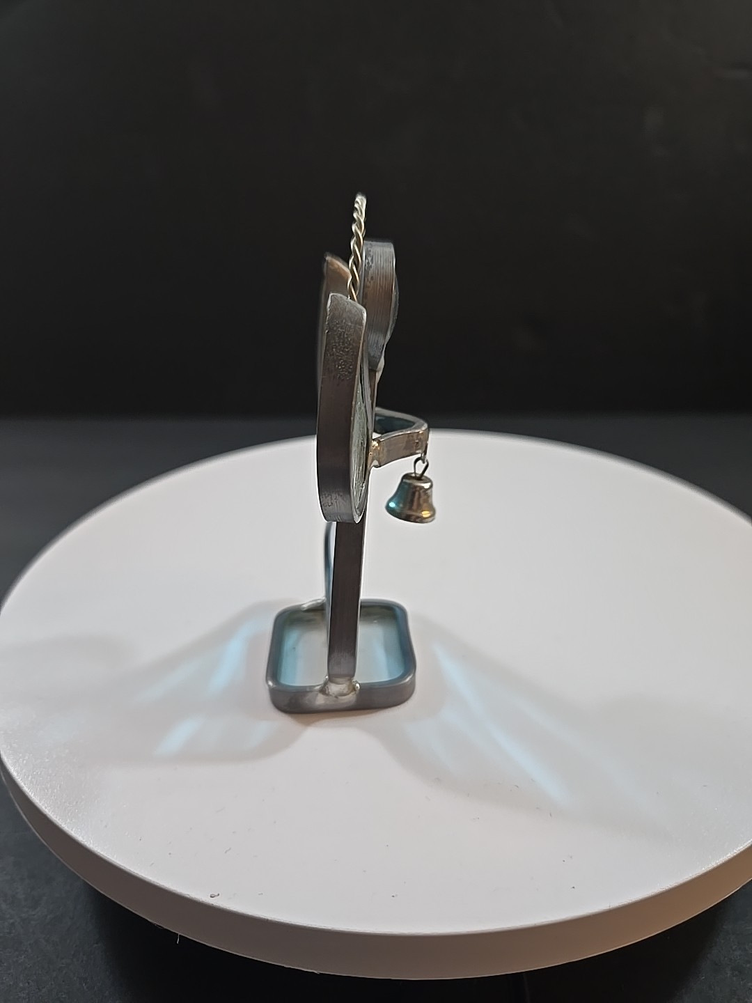 как выглядит Vintage Blue Stained Glass Angel w/Bell Figurine 4 Tall Free Standing фото