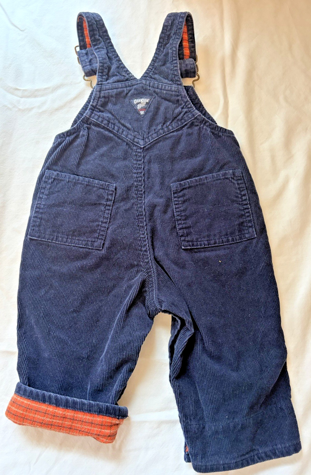 OshKosh B'gosh Navy Blue, Orange Flannel Lined Corduroy overalls size 6-9 mo
