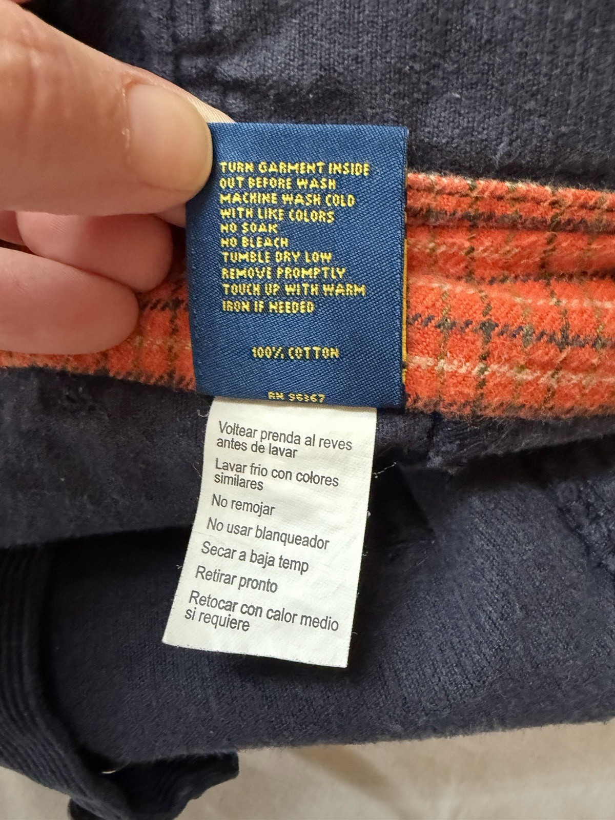 как выглядит OshKosh Bgosh Navy Blue, Orange Flannel Lined Corduroy overalls size 6-9 mo фото