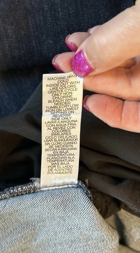 как выглядит Democracy Ab Solution Straight Slim Jeans 24W Blue Distressed Raw Hem Cropped. фото