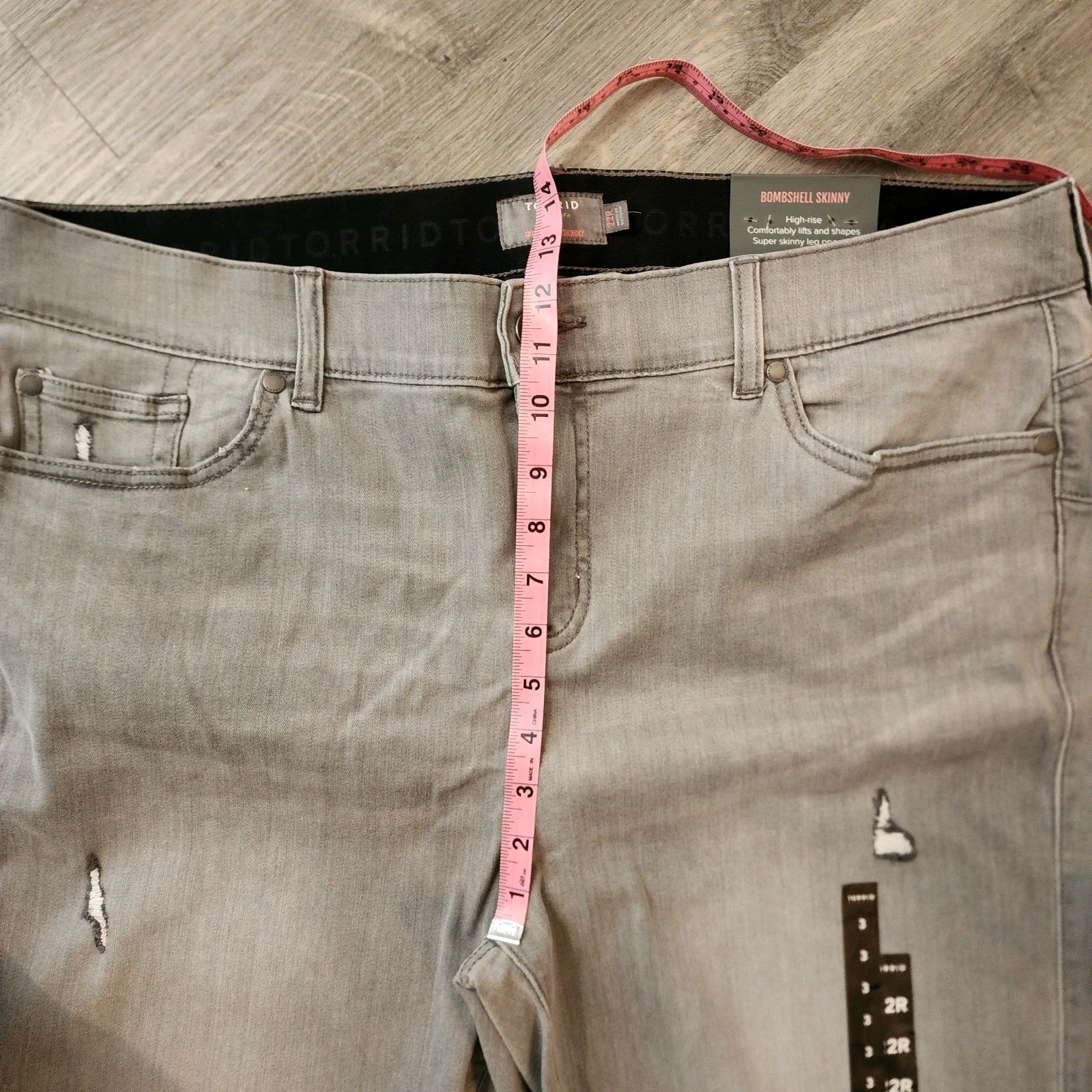 как выглядит NWT Torrid Bombshell Skinny Jeans 22 Gray Distressed High Rise Soft Stretch фото