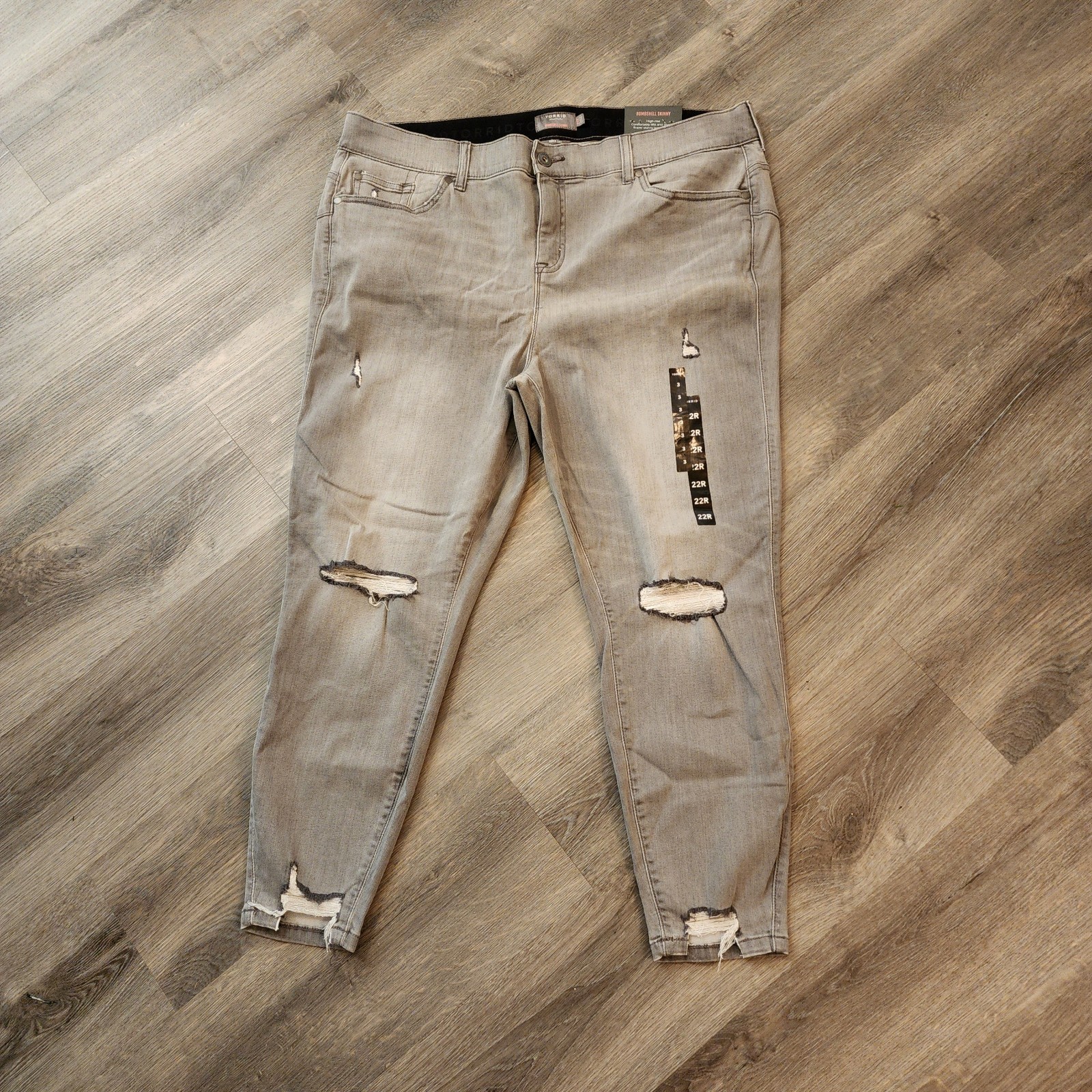 NWT Torrid Bombshell Skinny Jeans 22 Gray Distressed High Rise Soft Stretch