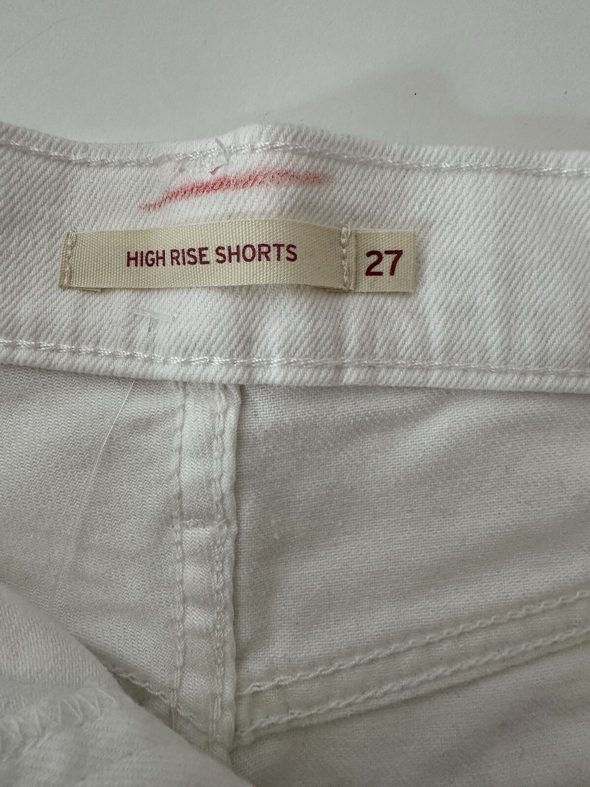 как выглядит Levis 501 Jean Shorts Women 27 White Distressed Stretch Beach Classic Outdoor фото
