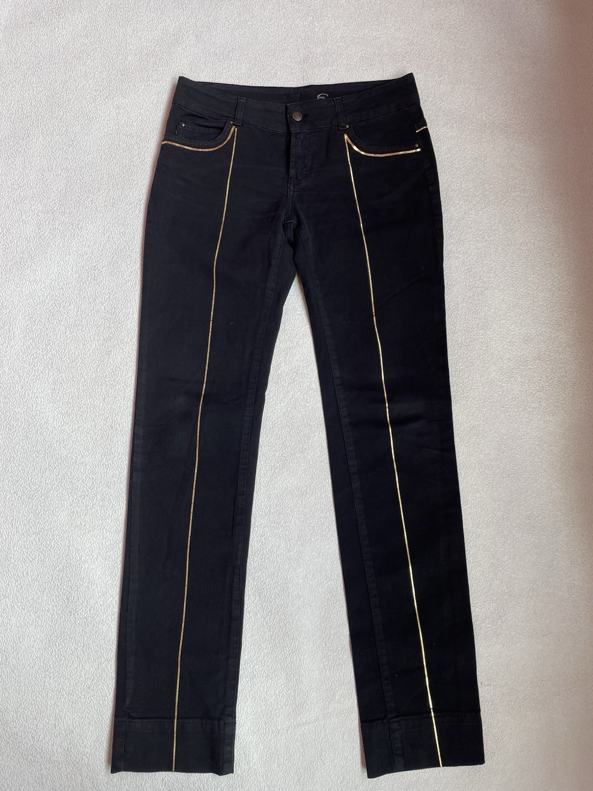 как выглядит Roberto Just Cavalli Black Jeans Slim Fit Gold Detail Designer фото