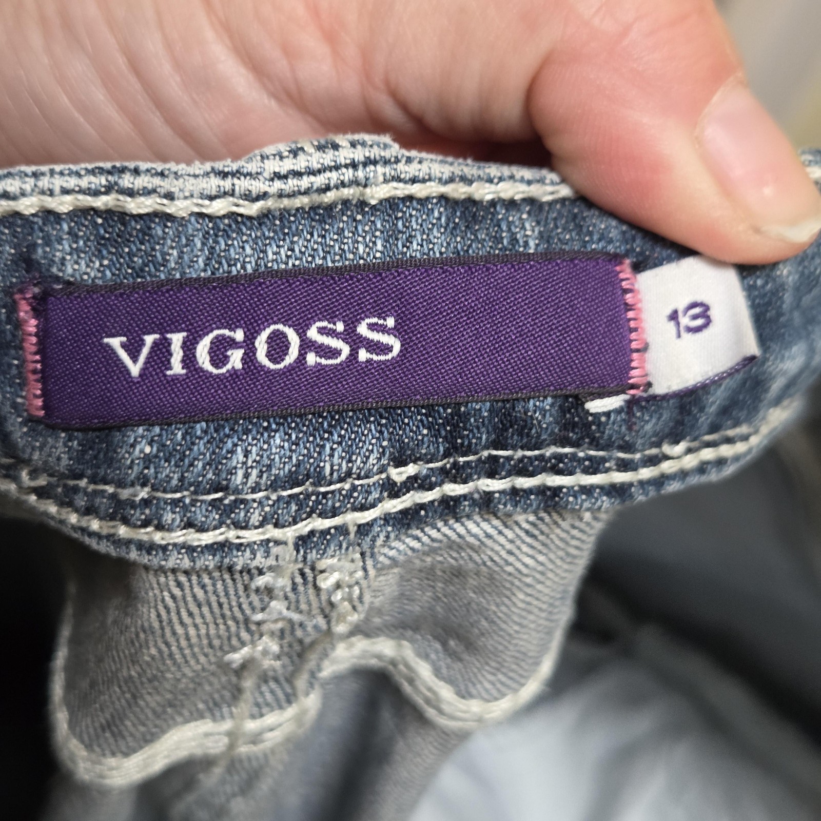 как выглядит Vigoss Jeans Womens Juniors 13 Blue Distressed Straight Stretch Denim Pants фото