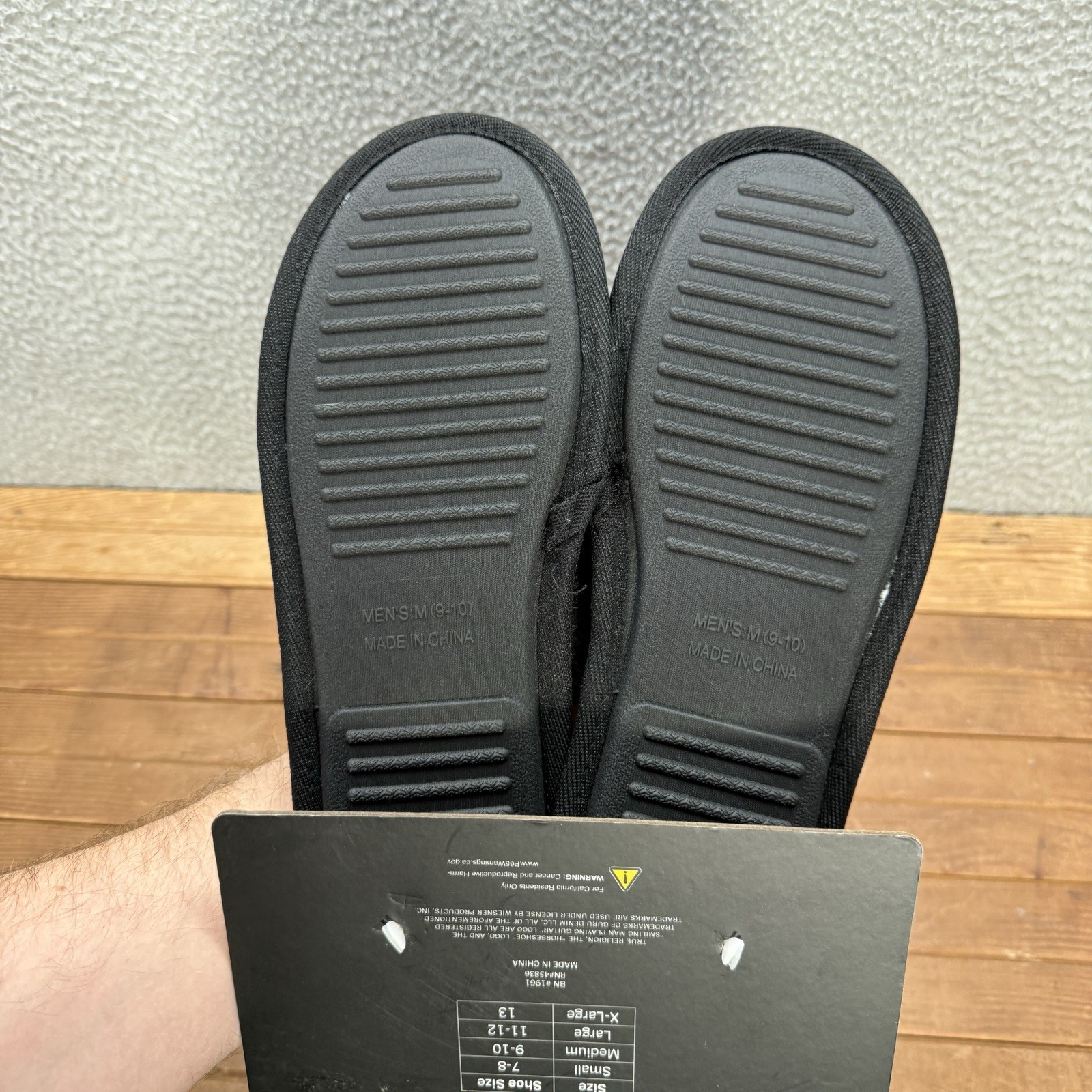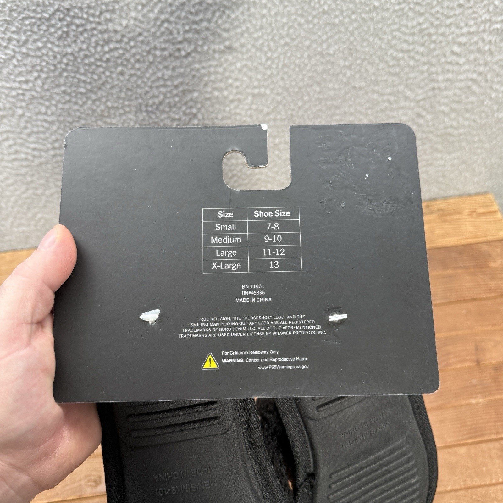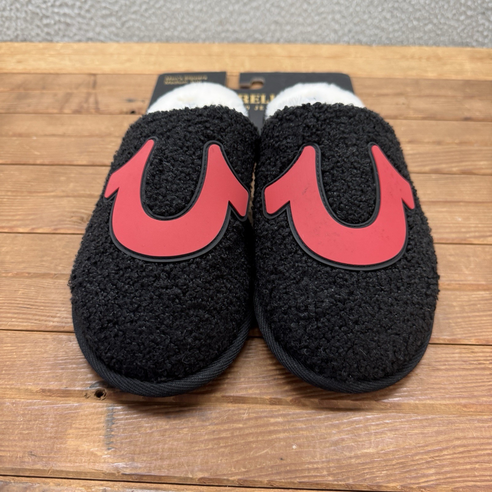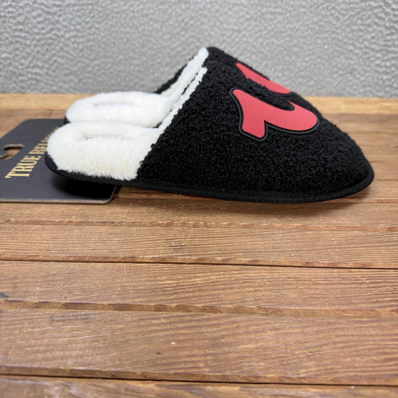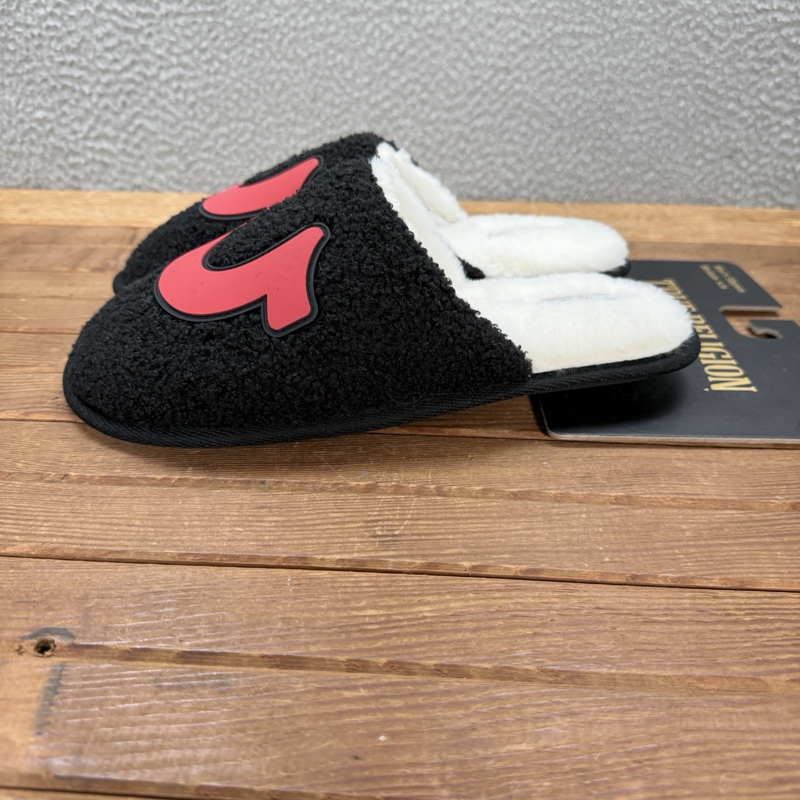 True Religion Slippers Mens Medium 9-10 Black Red Faux Fur Lined Slip On Scuff