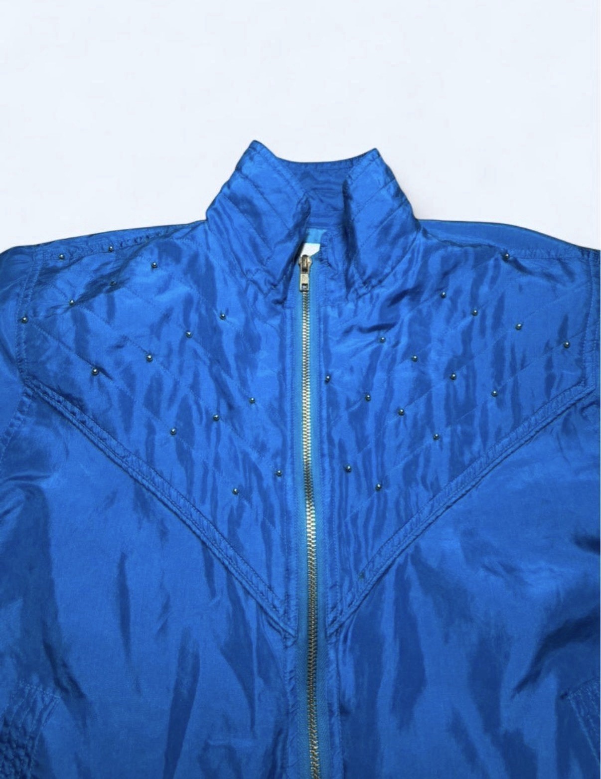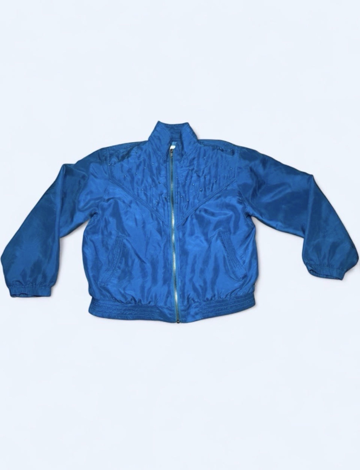 Petite Sophisticate Vintage Blue Windbreaker Jacket Studded Petite