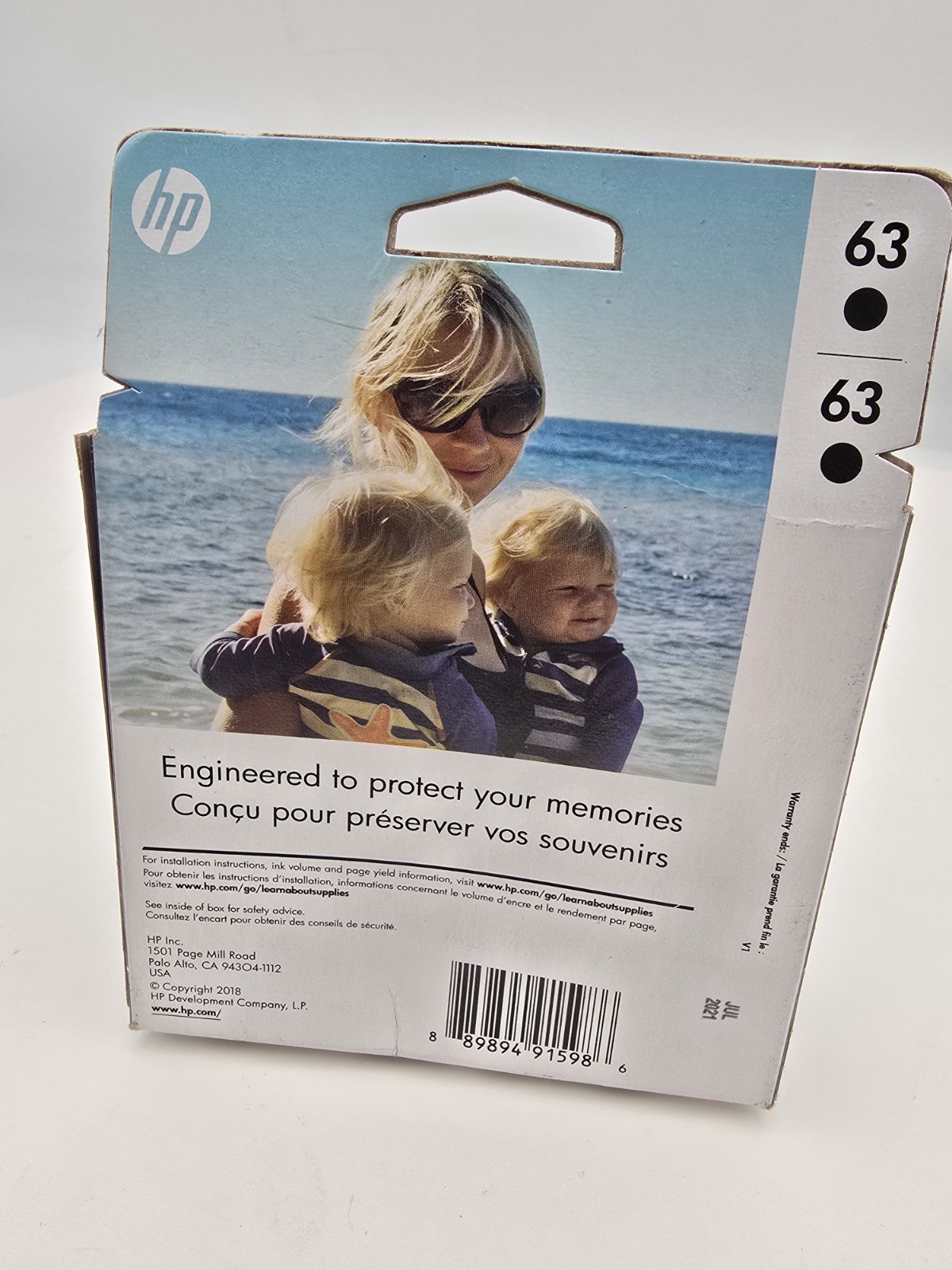 Genuine HP 63 Black Ink Cartridges 2-Pack Exp 2021 New Sealed