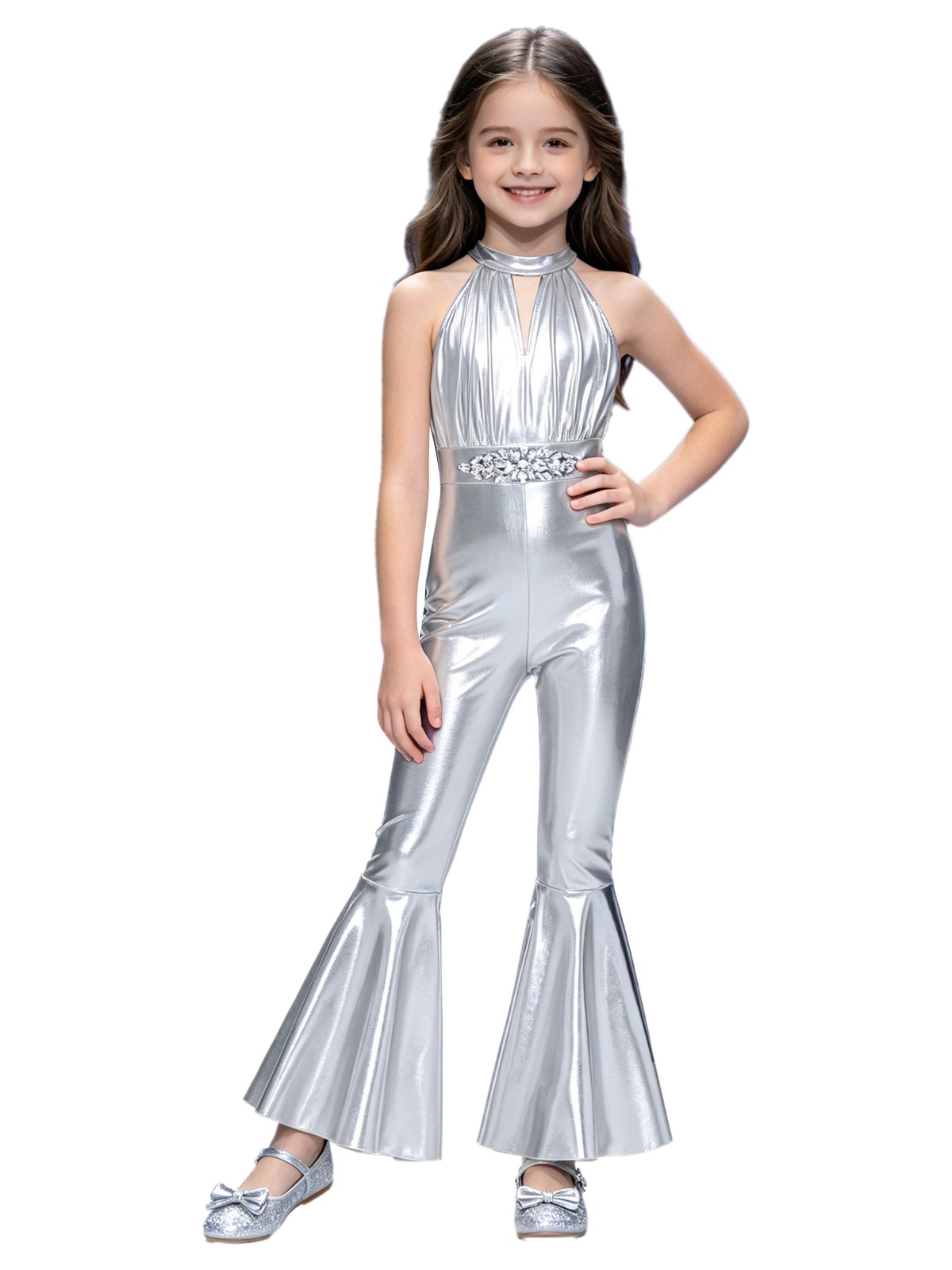 как выглядит Kids Girls Leotard Dance Rompers Wedding Jumpsuit Stage Metallic Rhinestone фото