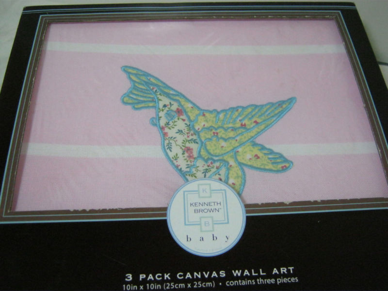 New KENNETH BROWN 3 PACK CANVAS WALL ART SWEET STITCHES NIB
