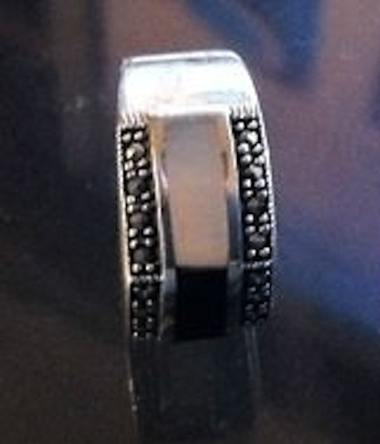 как выглядит 925 Sterling Silver Unisex Ring MARCASITE with ONYX MOTHER OF PEARL SIZE 7 фото