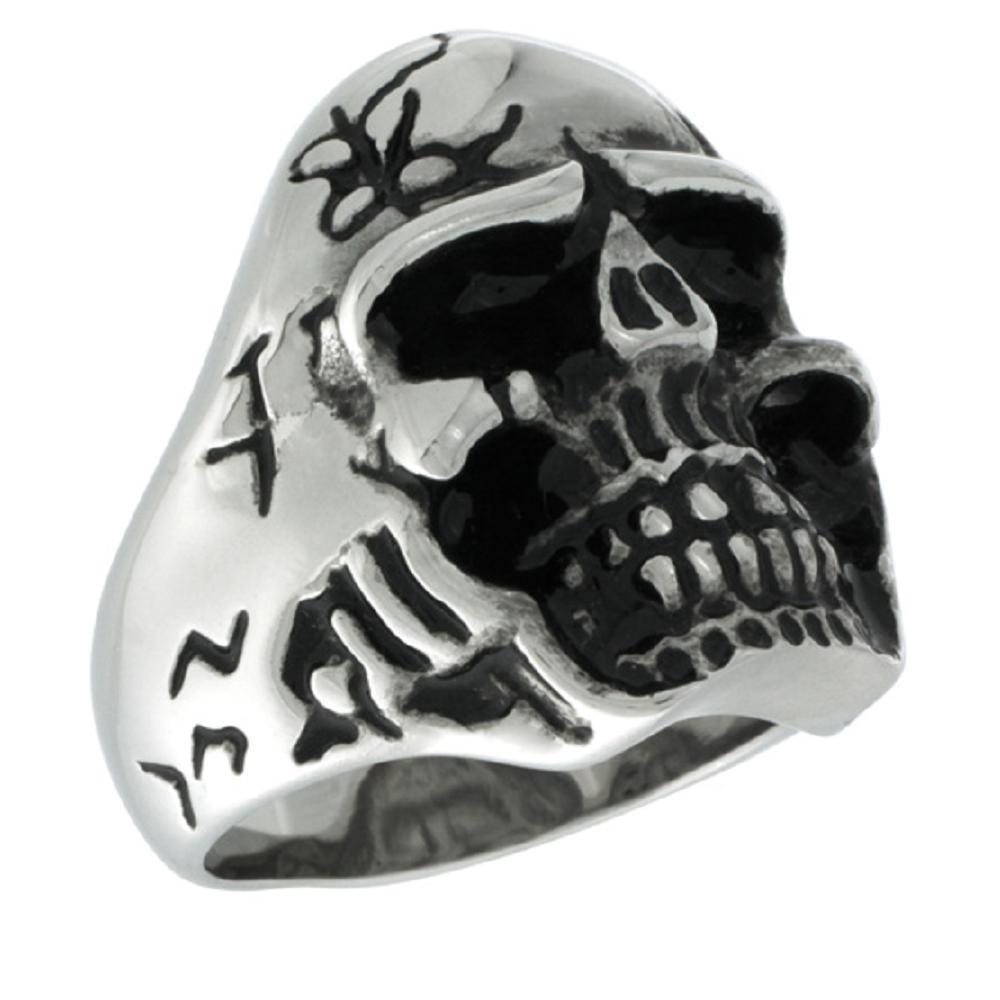 Stainless Steel Alien Graffiti Biker Skull Ring