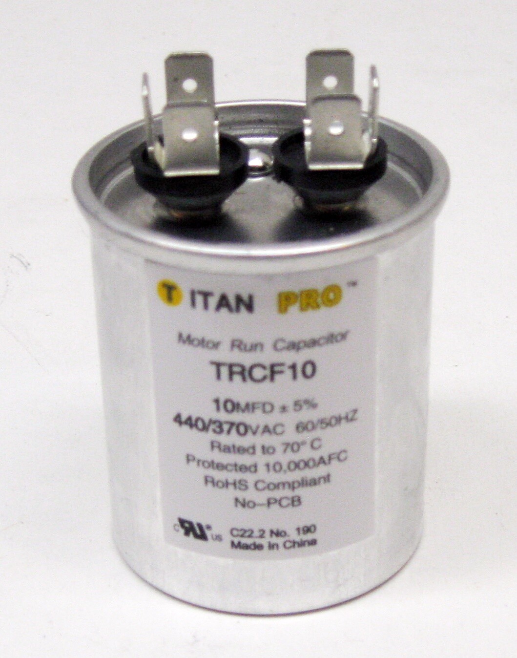 TitanPro TRCF10 HVAC Round Motor Run Capacitor. 10 MFD/UF 440/370 Volts