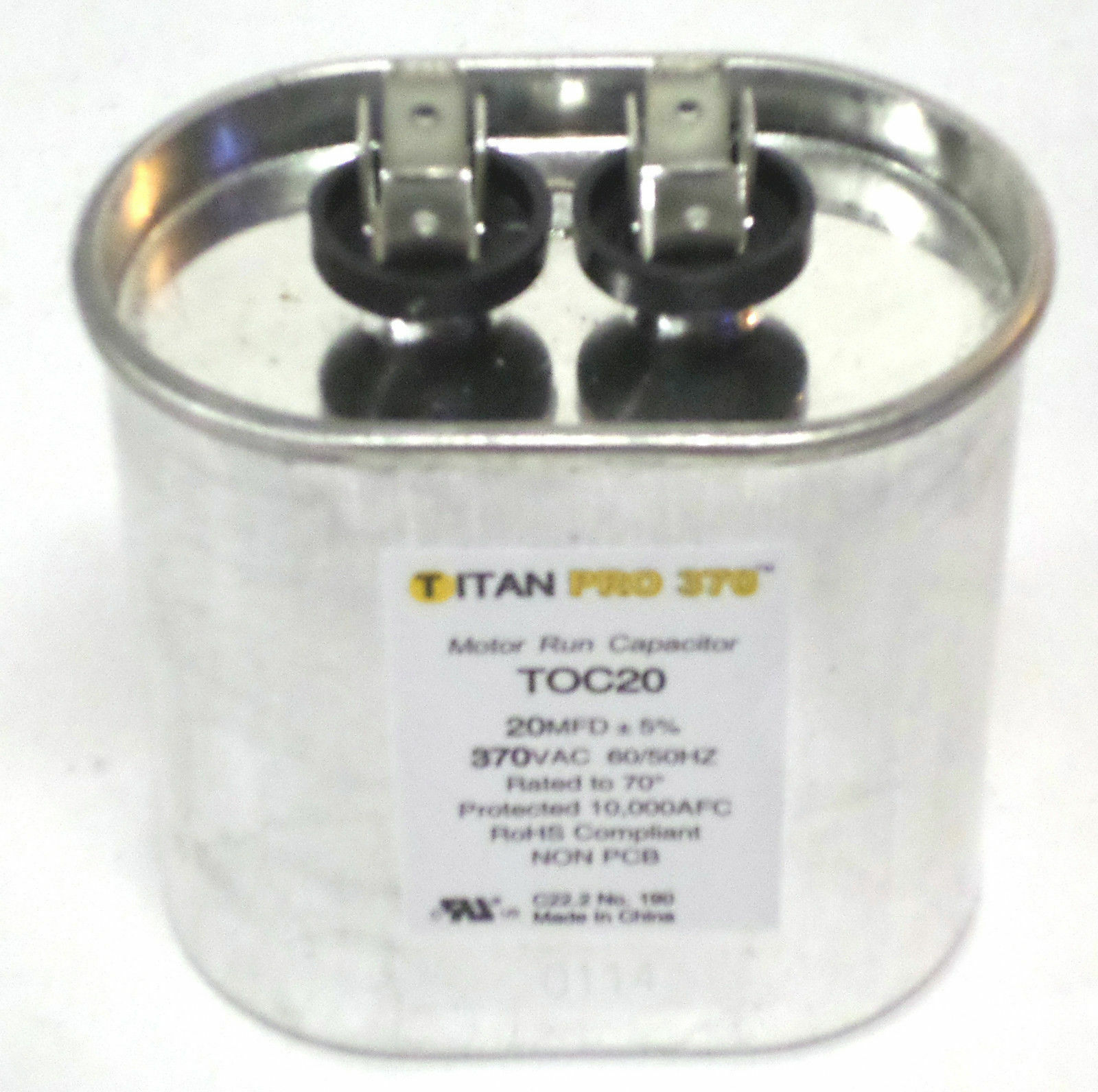 TitanPro TOC20 HVAC Oval Motor Run Capacitor 20 MFD/UF 370 Volts