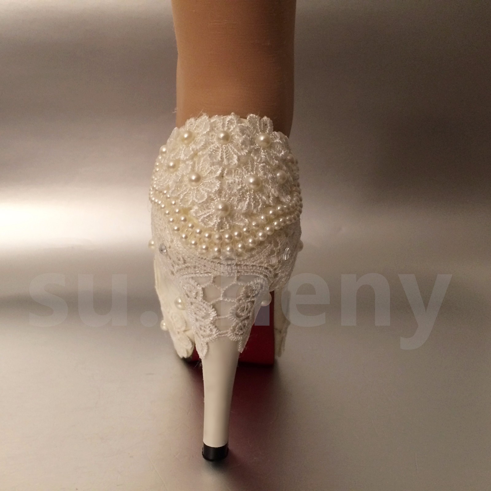 su.cheny 3 4 heel white ivory lace pearls Wedding shoes pumps bride size 5-11
