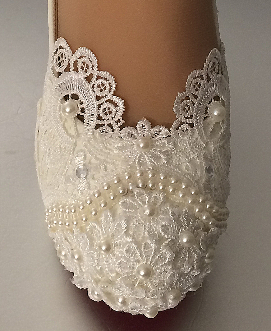 как выглядит su.cheny 3" 4 " heel white ivory lace pearls Wedding shoes pumps bride size 5-11 фото