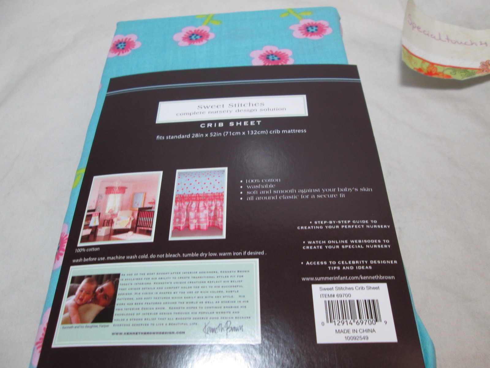 New Keneth Brown SWEET STITCHES Floral Crib Sheet 28x52 Pink, Blue, Green, Red