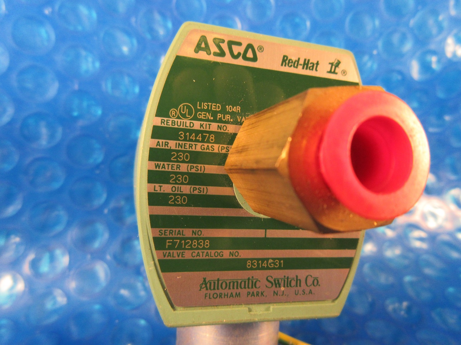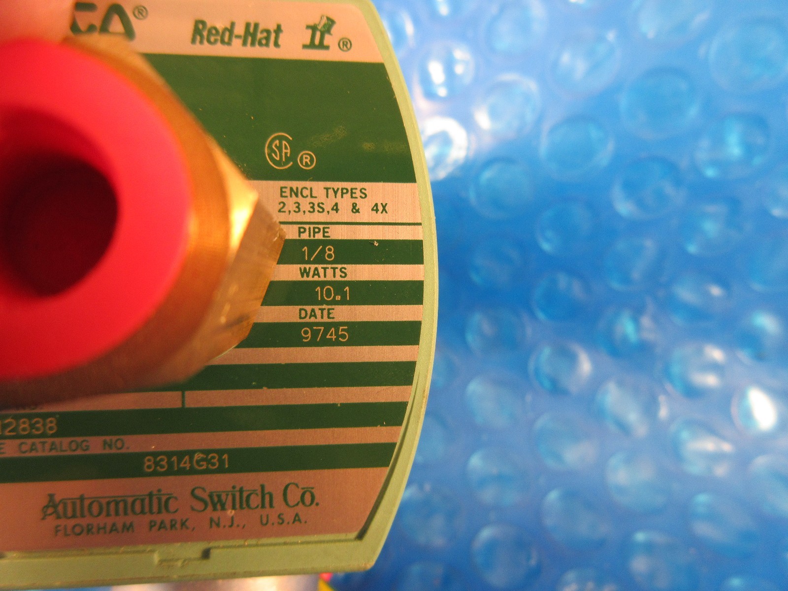 Asco 8314G31 Red Hat Solenoid Valve 3 Way 1/8 NPT Ports, N/C