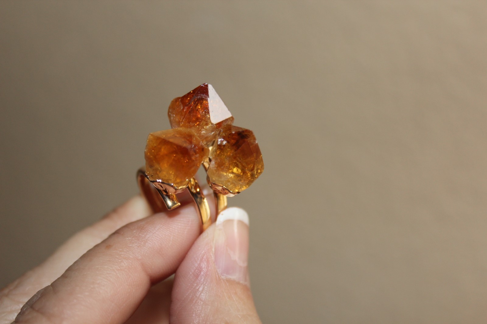 как выглядит Triple Citrine Dual Hoop Adjustable Ring from Brazil R419 фото