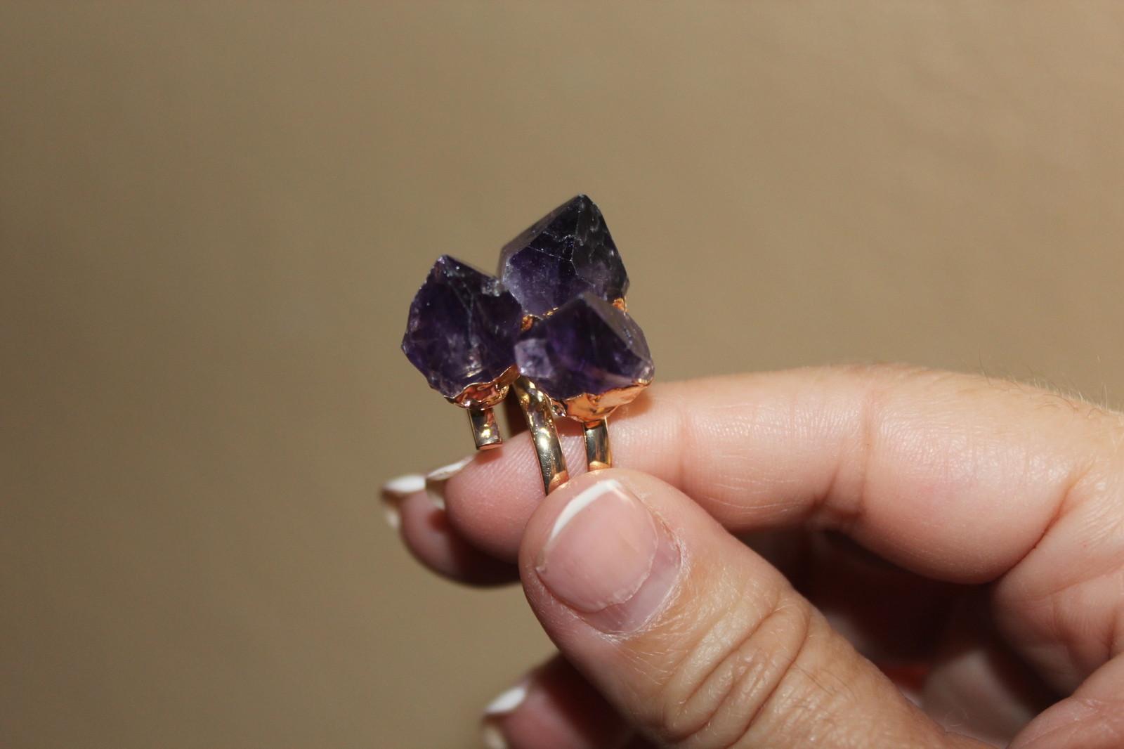 как выглядит Triple Amethyst Dual Hoop Adjustable Ring from Brazil R417 фото