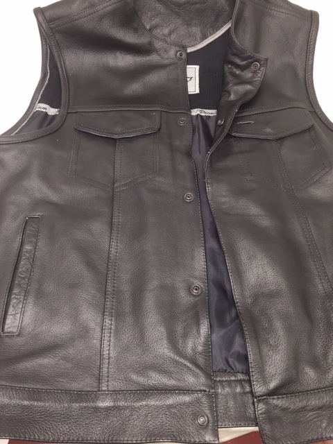 как выглядит MENS SON OF ANARCHY COLLARLESS LEATHER MOTORCYCLE VEST 2 GUN POCKETS INSIDE фото