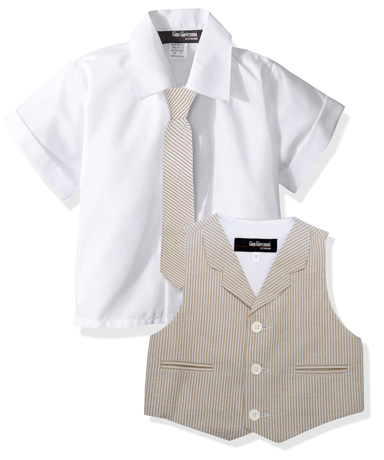 G286 Gino Giovanni Baby Toddler Boy Seersucker Summer Suit Vest Short Set