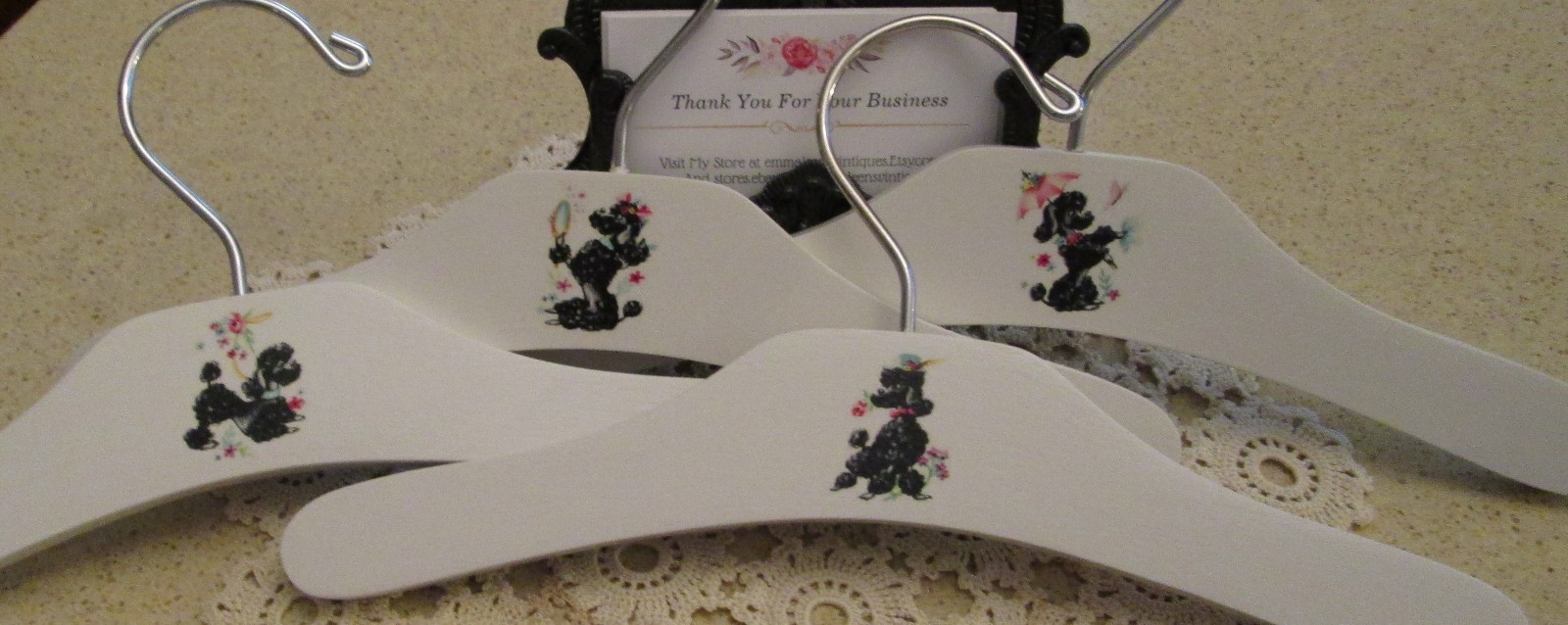 Vintage-Like 10 Infant Child's Wooden Painted Hanger With Decal French Poodles