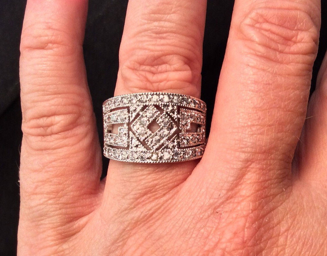 как выглядит Vintage FAS Sterling Silver Wedding Anniversary Rhinestone Band Ring Size 8.50 фото