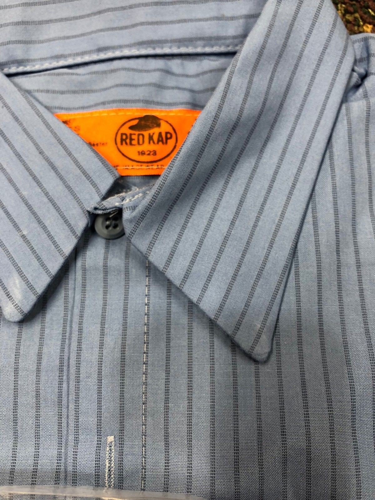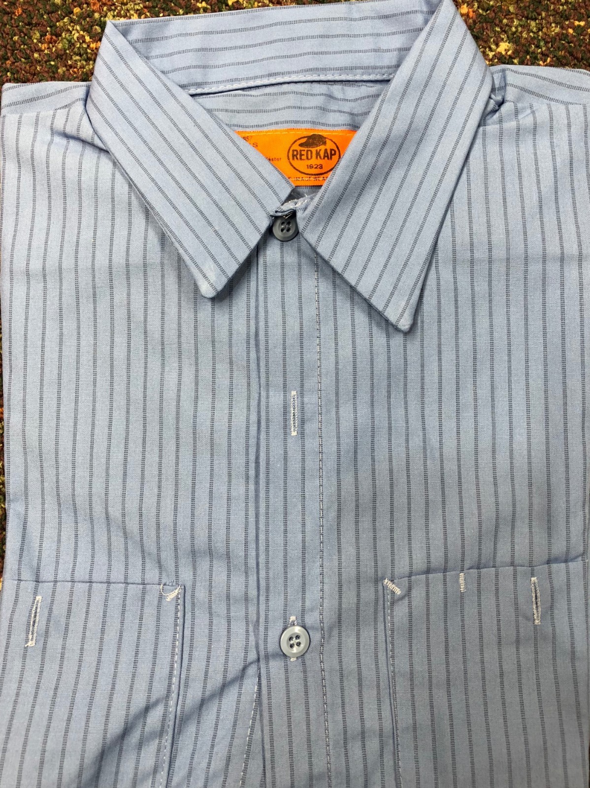 Red Kap Mens Short Sleeve Industrial Work Shirt - Petrol Blue with Navy Stripes
