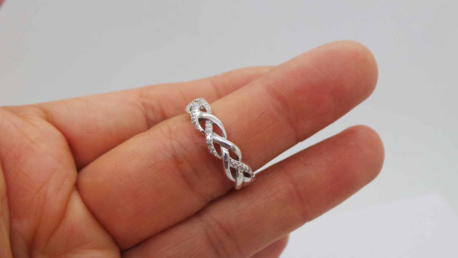 как выглядит STUNNING .925 STERLING SILVER LADIES DIAMOND BAND RING .10 tcw SZ 7.25 E15731-13 фото