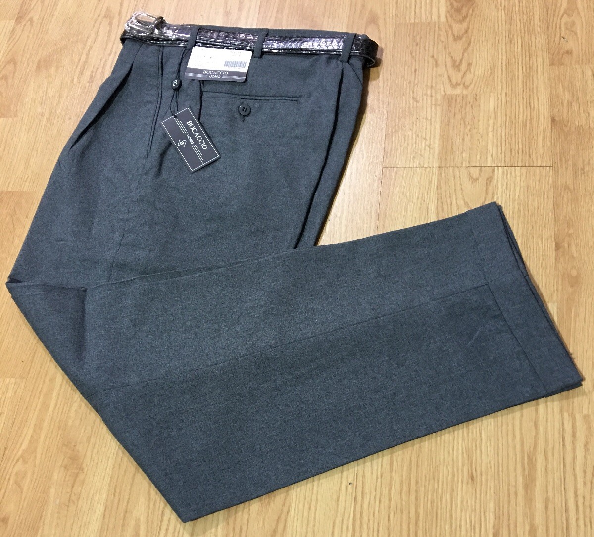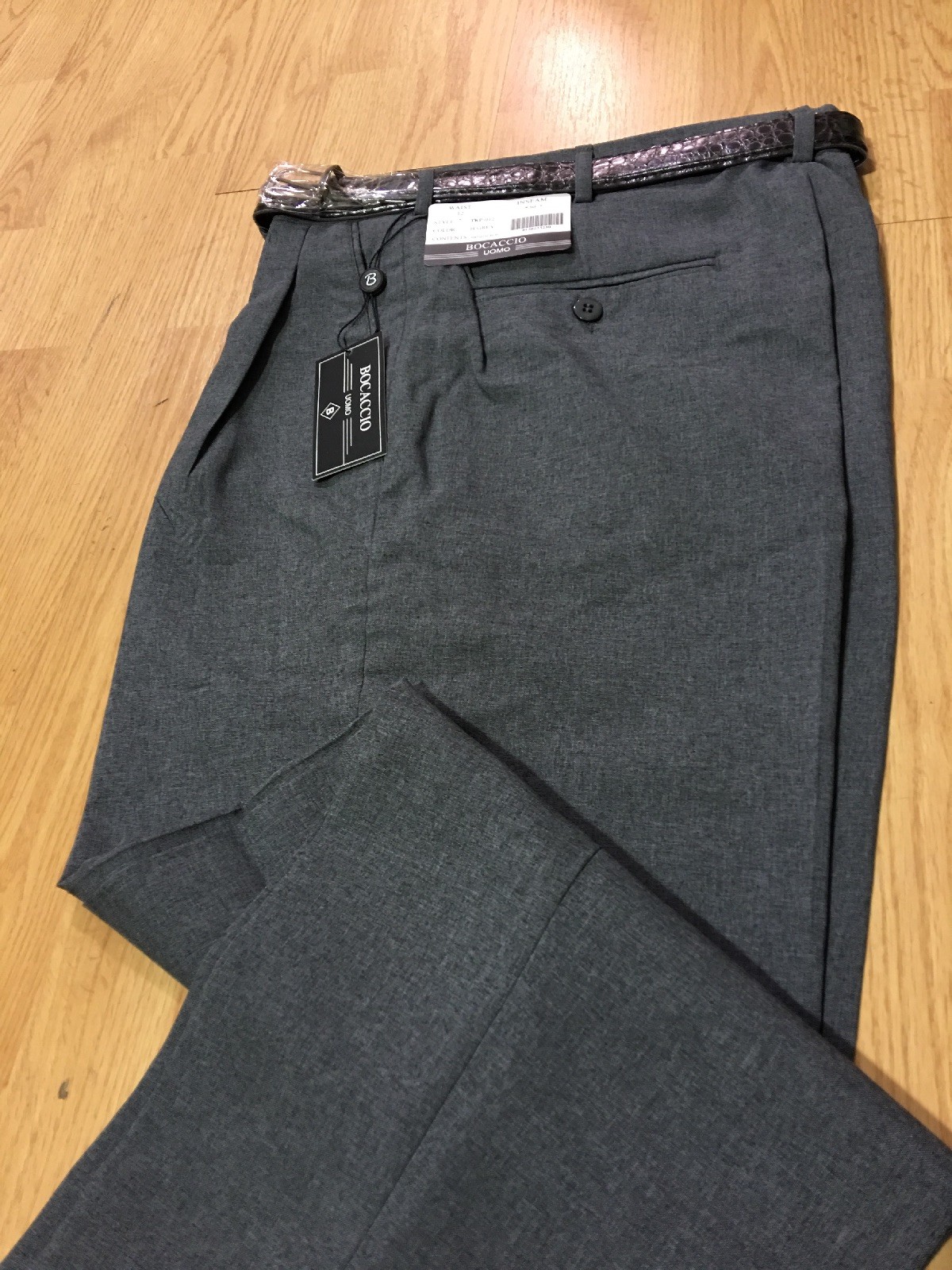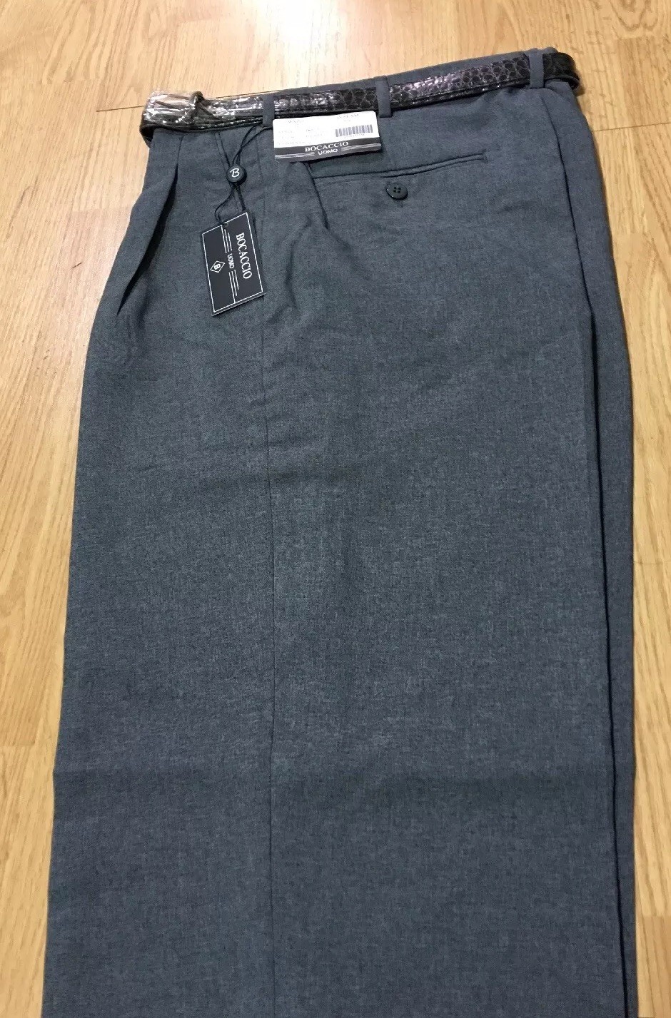 как выглядит MENS HEATHER GRAY PLEATED DRESS PANTS SLACKS TROUSERS BELT CUFFED BOTTOMS NEW фото